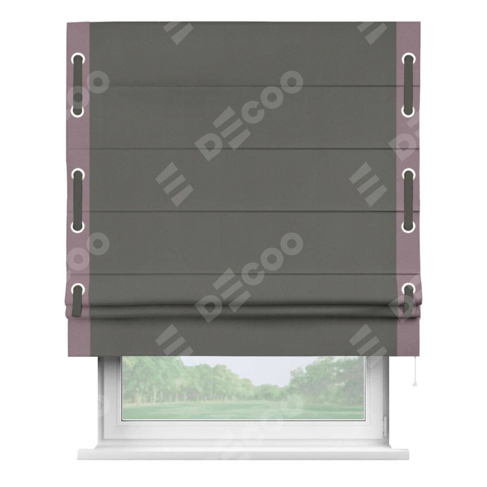 Римская штора «Кортин» для проема, блэкаут однотонный тёмно-серый с кантом Стрим Дуо (люверсы с пояском)