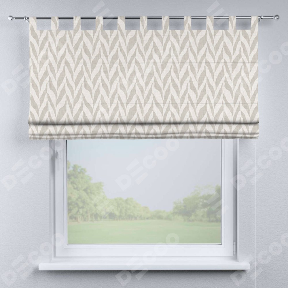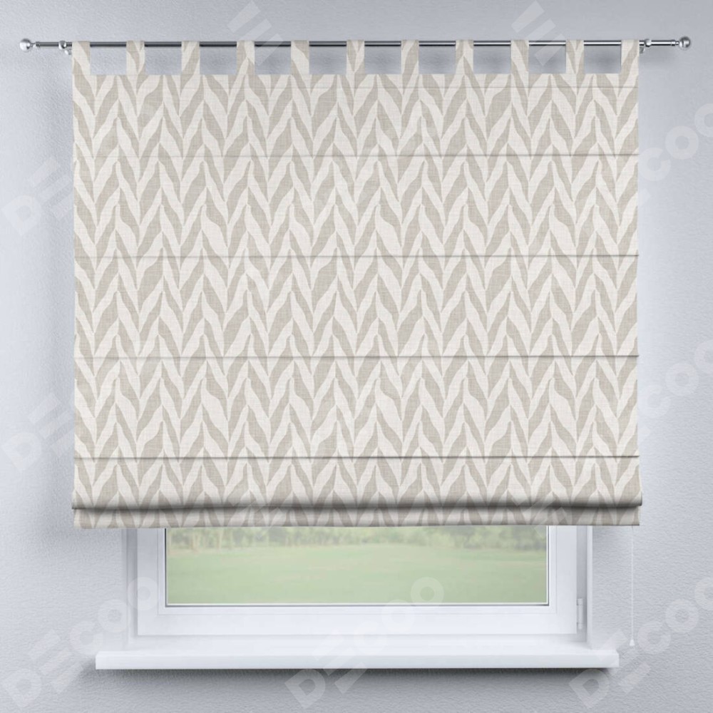 Римская штора производителя «Cortin», используется для проёма, пошита из ткани блэкаут с нанесением сублимационной печати «Песочный зебрано». Данная модель пошита на петлях, комплектуется на выбор круглым карнизом и подходит для монтажа на стену. Римская штора на петлях имеет простую систему регулировки высоты, отличительным преимуществом данной модели является простой способ монтажа. Достаточно повесить ее на трубу и штора готова!