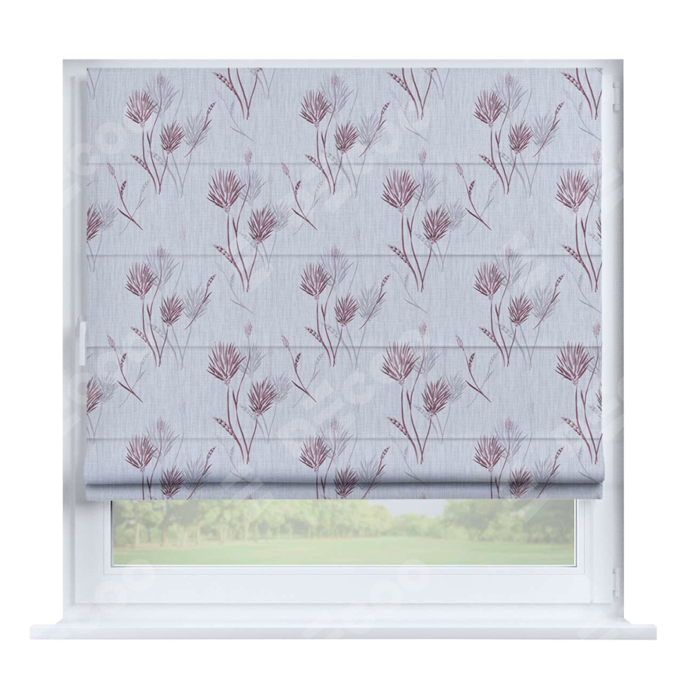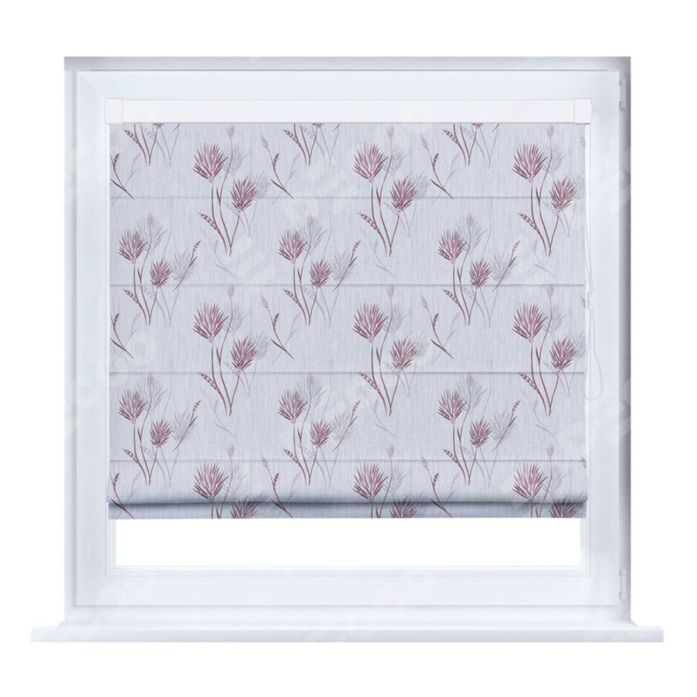 Римская штора производителя «Cortin», устанавливается на створку окна, пошита из ткани блэкаут с нанесением сублимационной печати «Полевые травы серый». Штора шьётся по индивидуальным размерам, для данного типа римской шторы возможная ширина от 35 до 150 см., высота до 250 см.