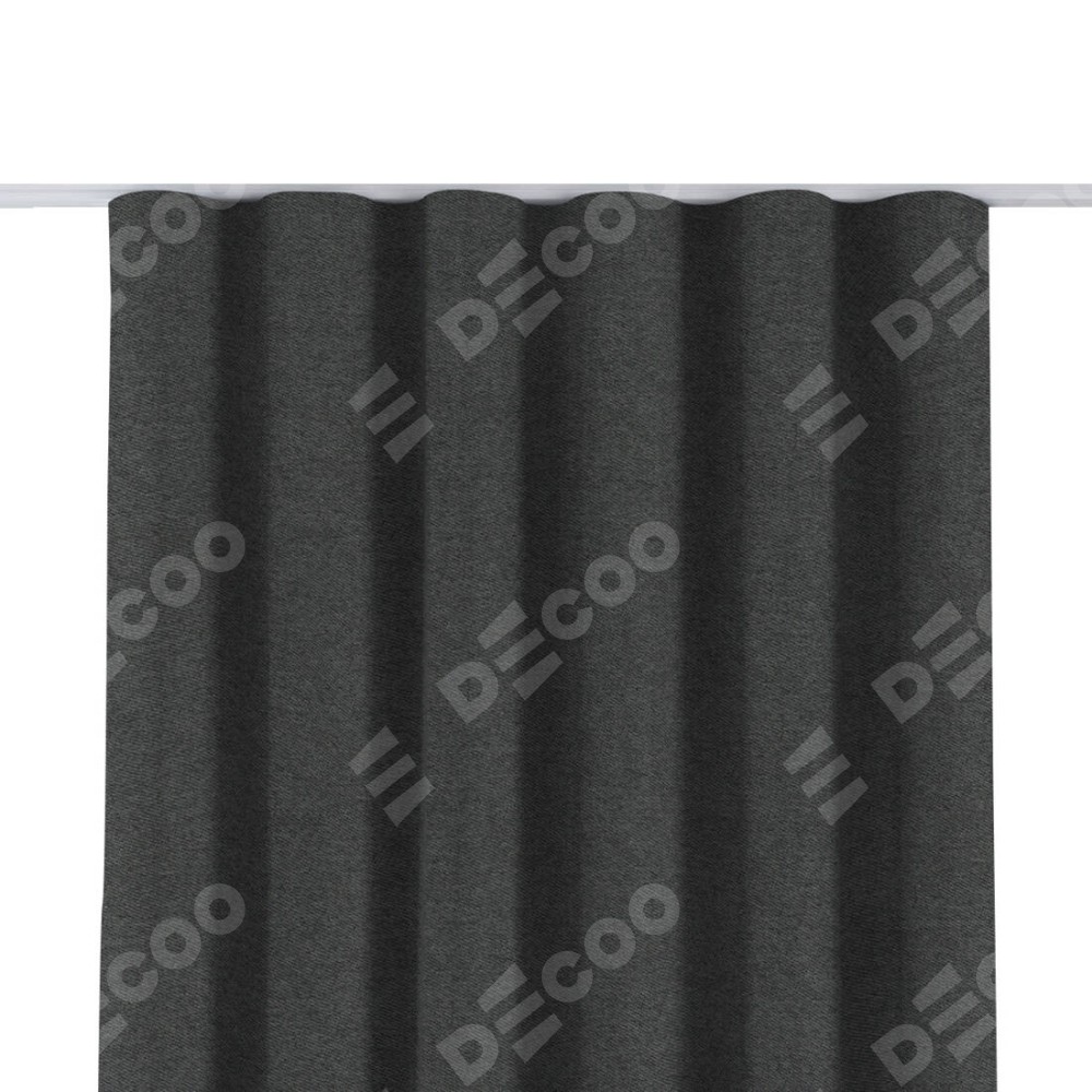 Комплект прямых штор, от производителя «Cortin», пошиты из ткани твид блэкаут тёмно-серый, артикул ткани 90938. С изнаночной стороны в верхней части штор пристрачивается шторная лента с декоративными складками «Волна». Для создания элегантных складок прямые шторы шьются по стандарту с коэффициентом 1:2 (на 100 см. ширины проёма 200 см. ширины ткани).