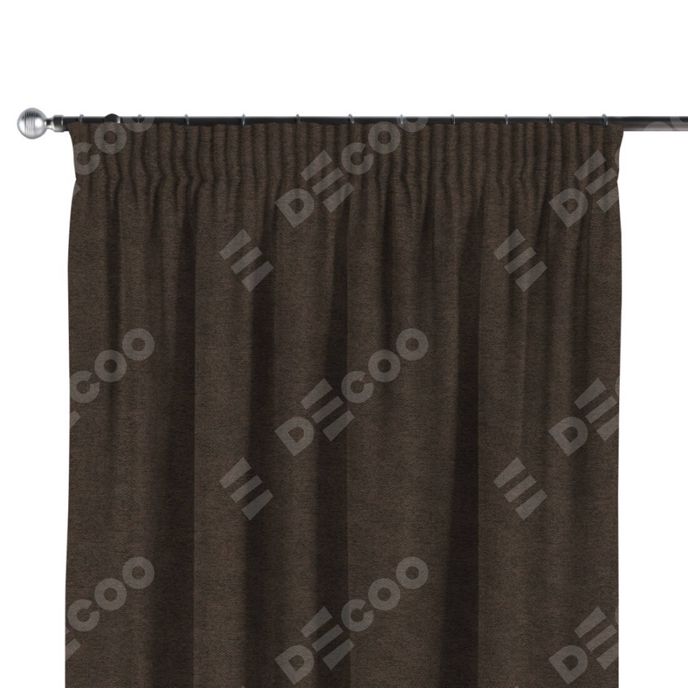 Комплект прямых штор, от производителя «Cortin», пошиты из ткани твид блэкаут тёмно-коричневый, артикул ткани 90933. С изнаночной стороны в верхней части штор пристрачивается шторная лента с декоративными складками «Карандаш». Для создания элегантных складок прямые шторы шьются по стандарту с коэффициентом 1:2 (на 100 см. ширины проёма 200 см. ширины ткани).