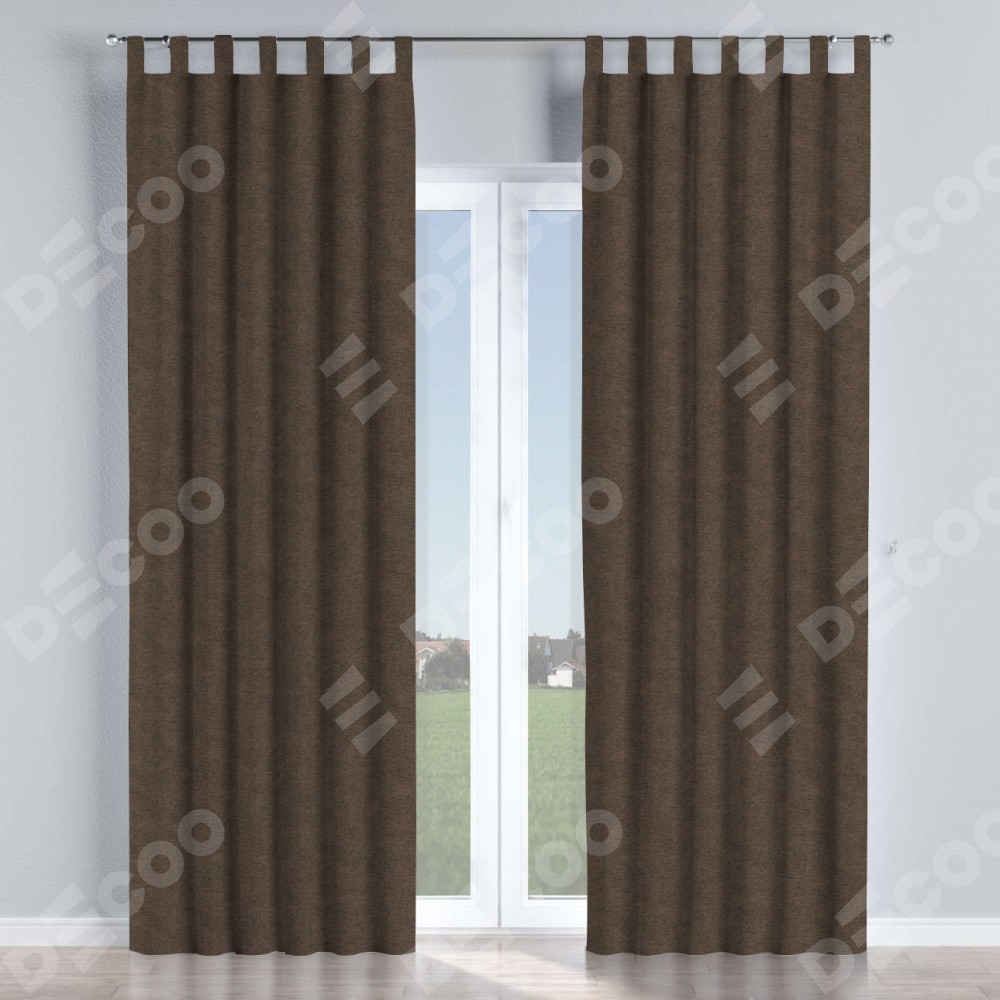 Комплект прямых штор, от производителя «Cortin», пошиты из ткани твид блэкаут тёмно-коричневый, артикул ткани 90933. Данная модель пошита на петлях, комплектуется на выбор круглым карнизом и подходит для монтажа на стену или потолок. Прямые шторы на петлях шьются по стандарту с коэффициентом 1/2 (на 100 см. ширины проёма 200 см. ширины ткани), отличительным преимуществом данной модели является простой способ монтажа. Достаточно повесить ее на трубу и штора готова!