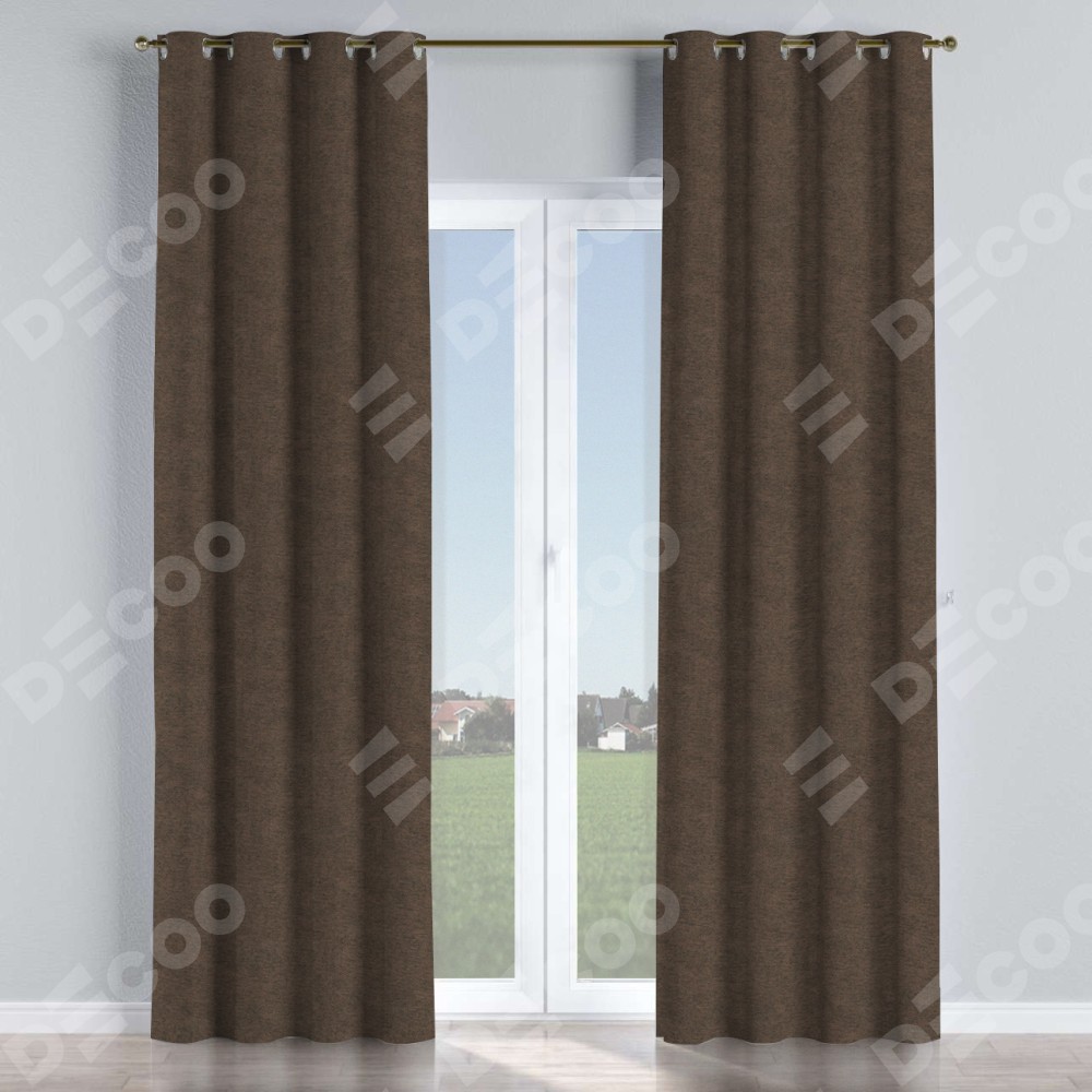 Комплект штор твид блэкаут тёмно-коричневый, на люверсах