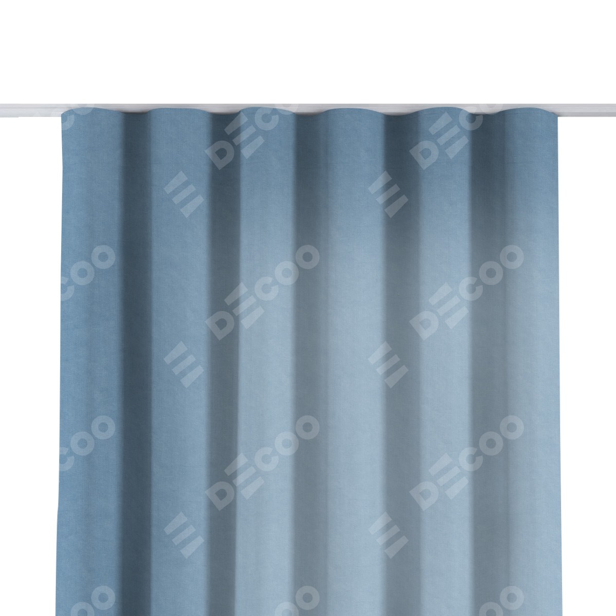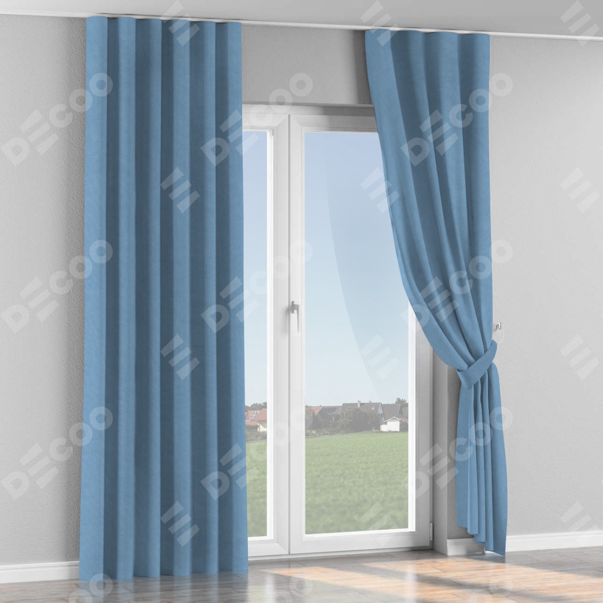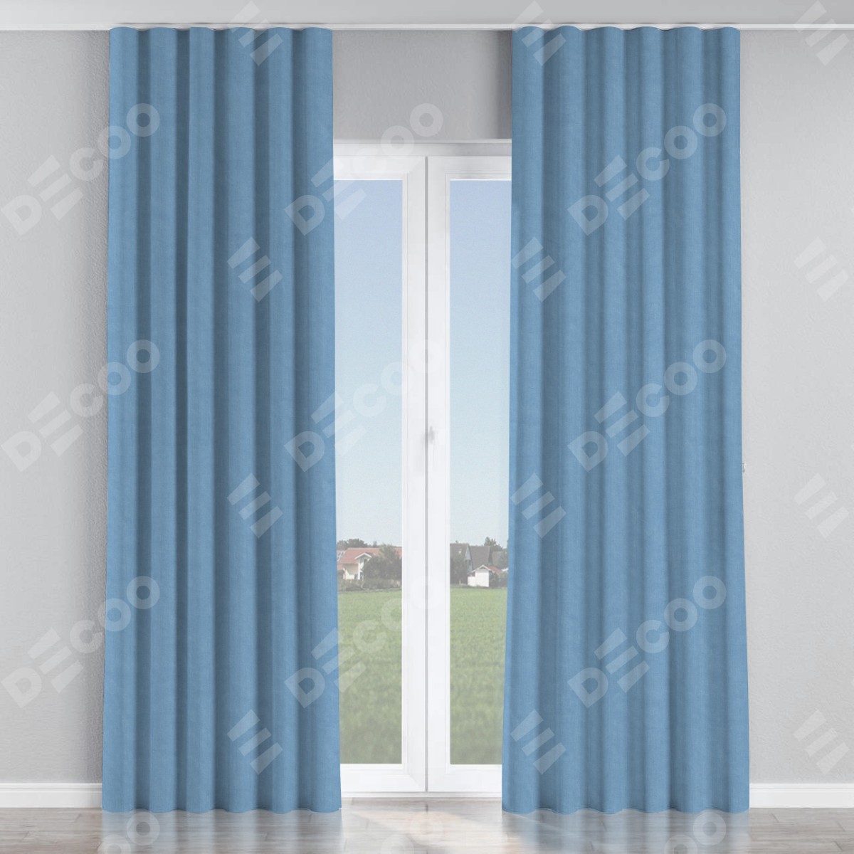 Комплект прямых штор, от производителя «Cortin», пошиты из ткани канвас голубой, артикул ткани 92729. С изнаночной стороны в верхней части штор пристрачивается шторная лента с декоративными складками «Волна». Для создания элегантных складок прямые шторы шьются по стандарту с коэффициентом 1:2 (на 100 см. ширины проёма 200 см. ширины ткани).