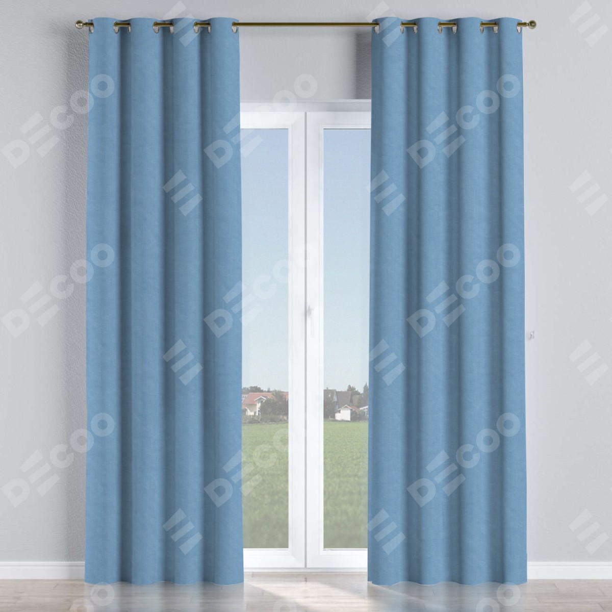 Комплект прямых штор, от производителя «Cortin», пошиты из ткани канвас голубой, артикул ткани 92729. Данная модель пошита на люверсах, комплектуется на выбор круглым карнизом и подходит для монтажа на стену или потолок. Прямые шторы на люверсах шьются по стандарту с коэффициентом 1/2 (на 100 см. ширины проёма 200 см. ширины ткани), отличительным преимуществом данной модели является простой способ монтажа. Достаточно повесить ее на трубу и штора готова!