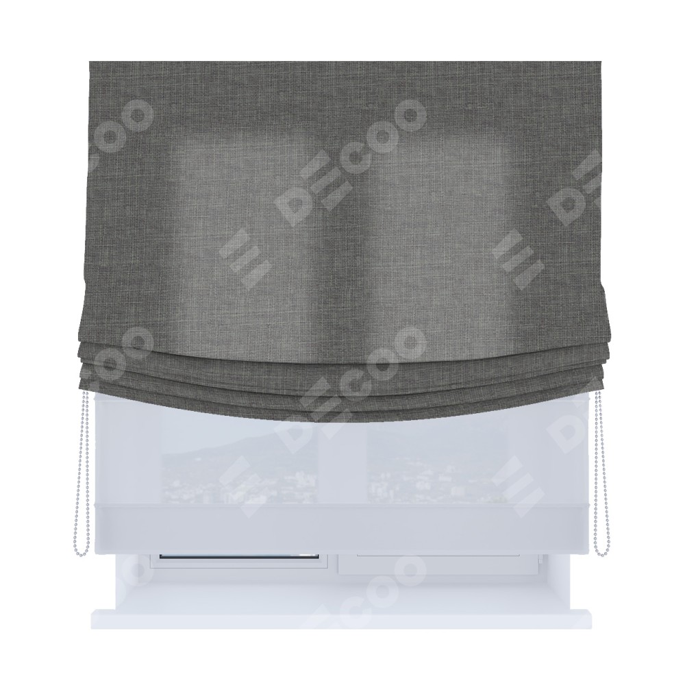 Римская штора «Кортин», лён тёмно-серый, день-ночь с мягкими складками