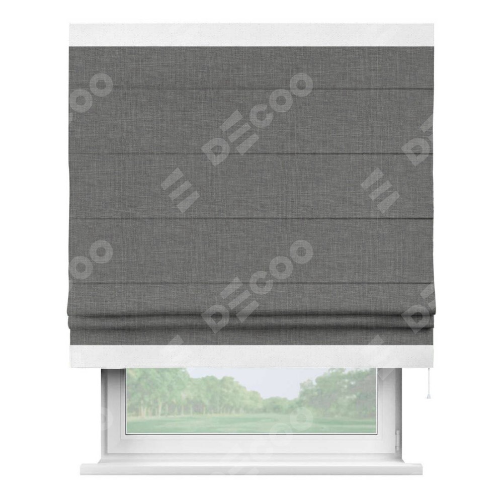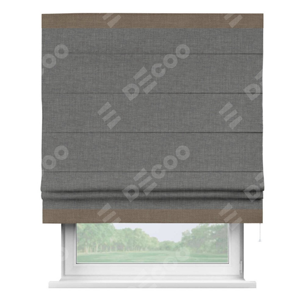 Римская штора «Кортин» с кантом Горизонт, для проема, лён тёмно-серый