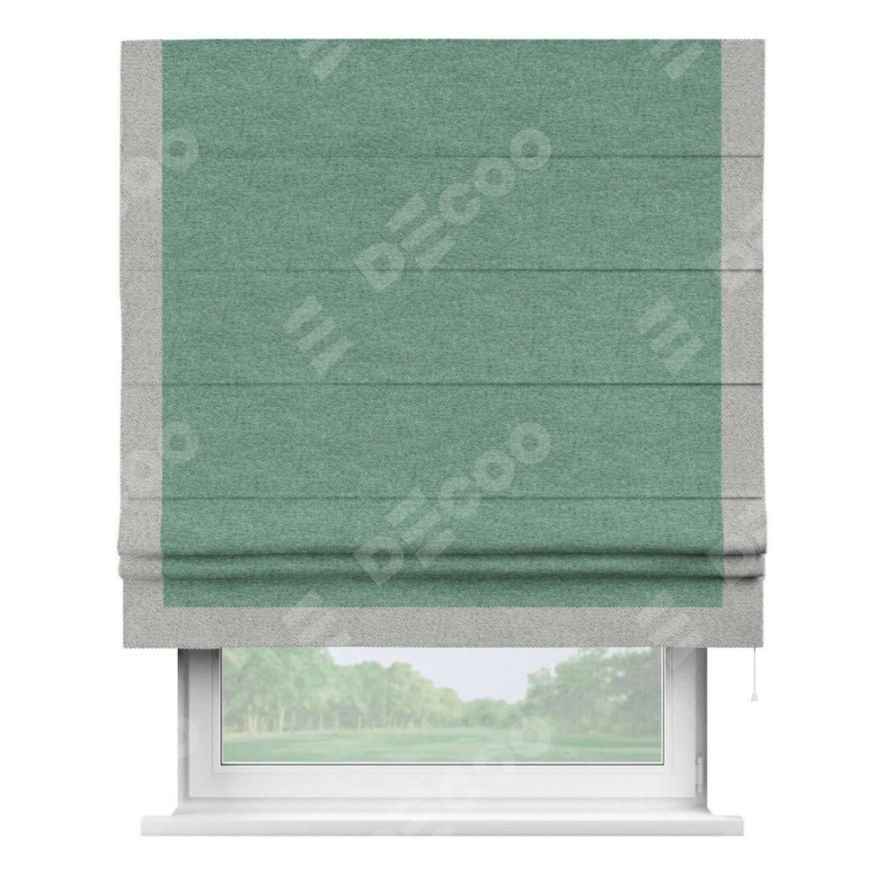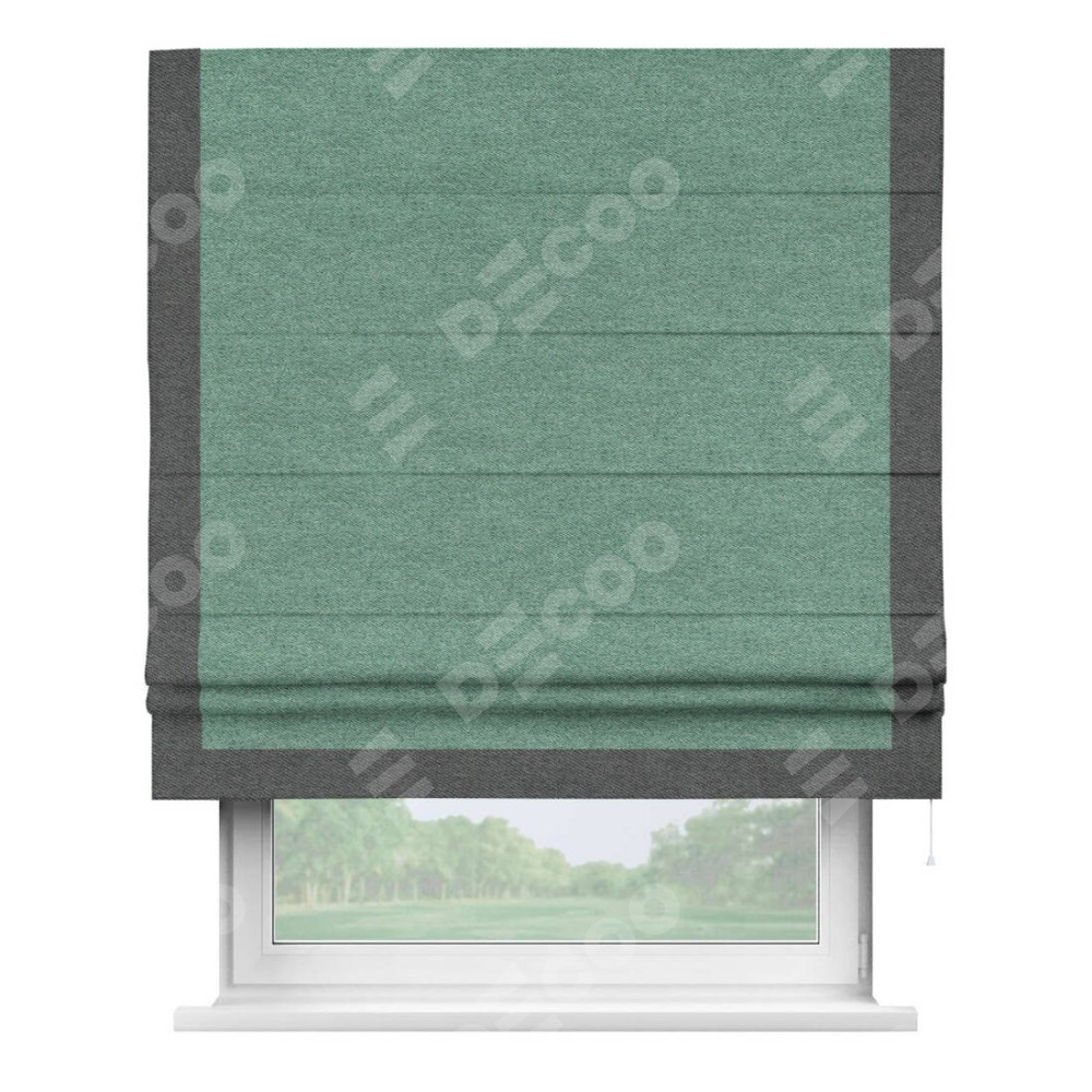Римская штора «Кортин» с кантом Виктория, для проема, твид блэкаут бирюзовый