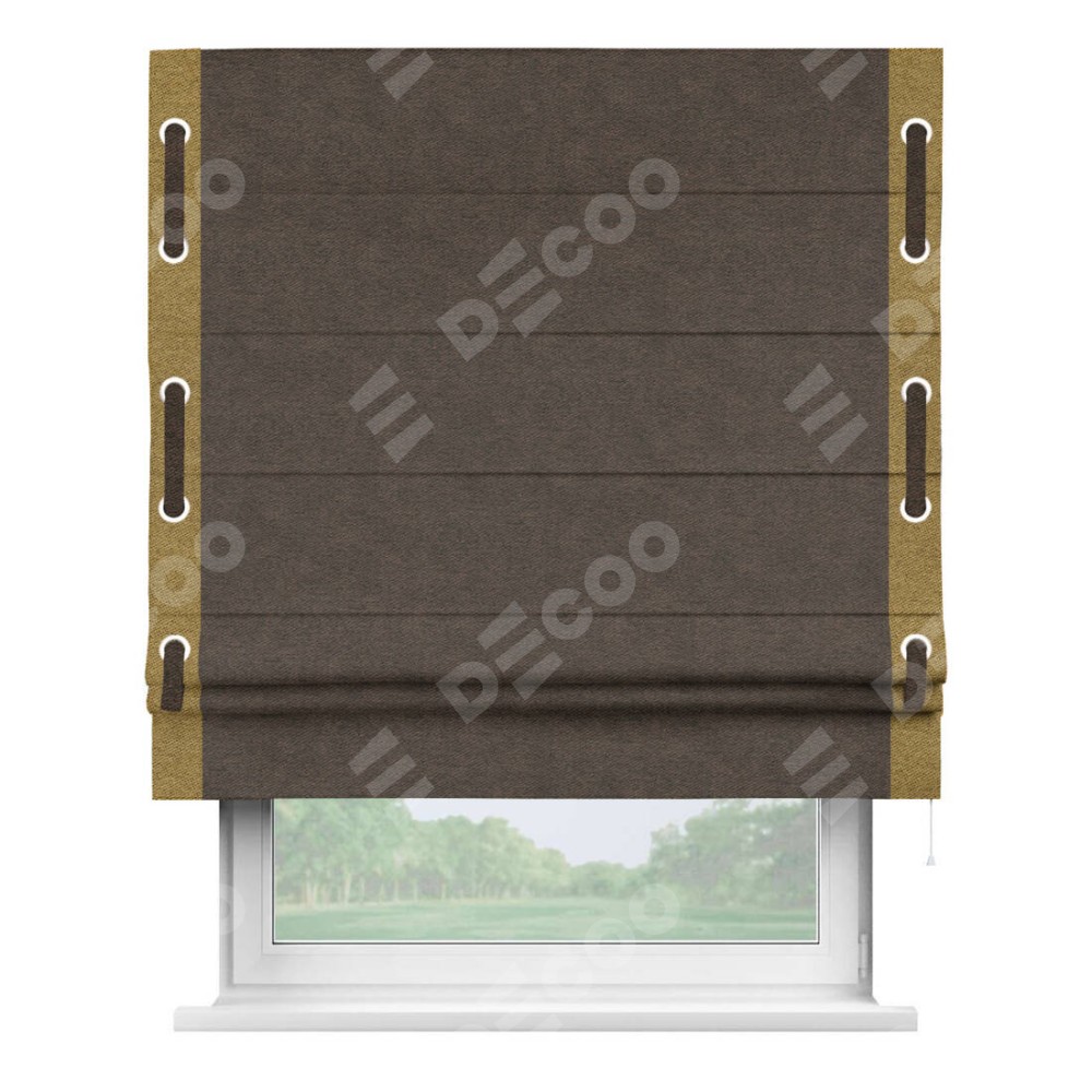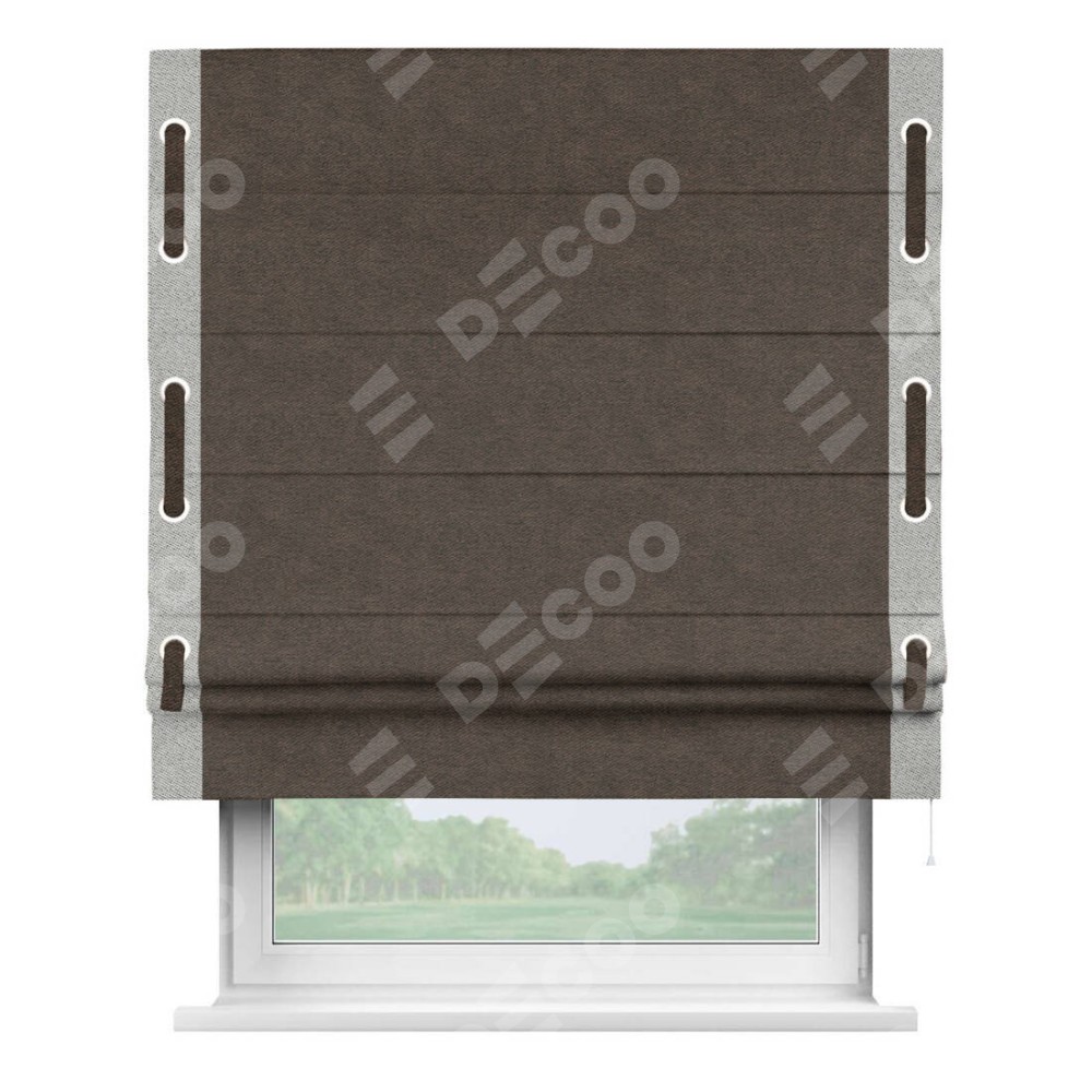 Римская штора «Кортин» для проема, твид блэкаут тёмно-коричневый, с кантом Стрим Дуо (люверсы с пояском)
