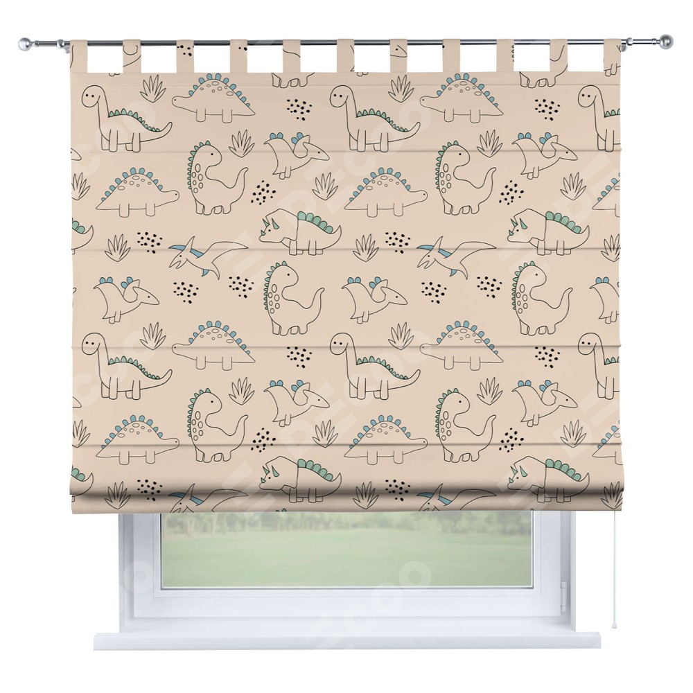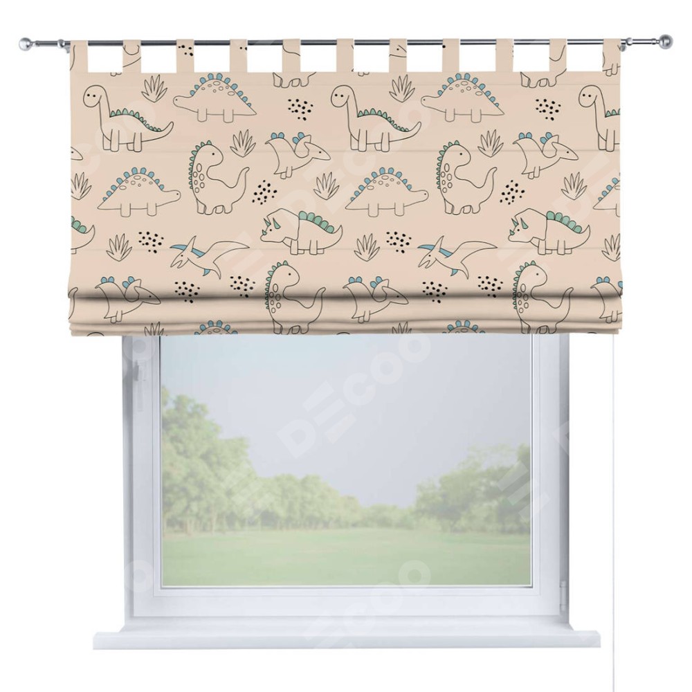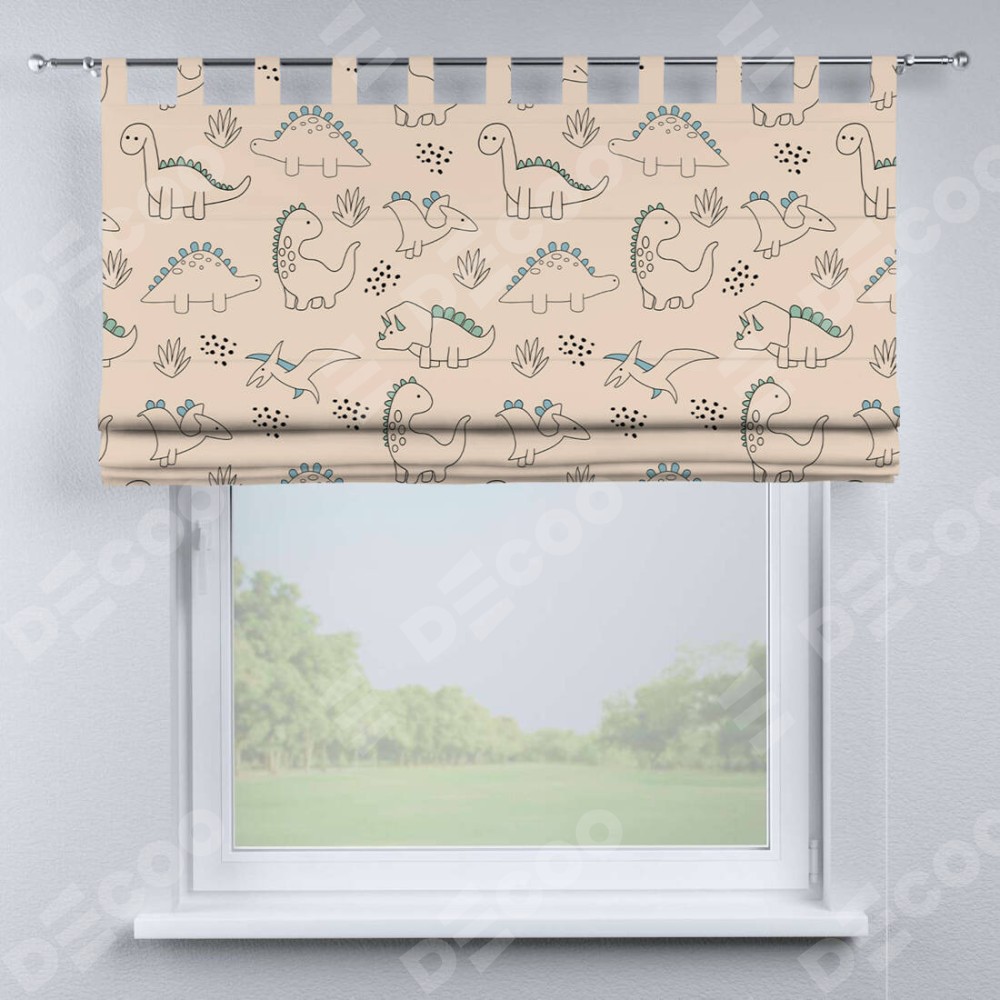 Римская штора производителя «Cortin», используется для проёма, пошита из ткани блэкаут с нанесением сублимационной печати «Динозаврики». Данная модель пошита на петлях, комплектуется на выбор круглым карнизом и подходит для монтажа на стену. Римская штора на петлях имеет простую систему регулировки высоты, отличительным преимуществом данной модели является простой способ монтажа. Достаточно повесить ее на трубу и штора готова!