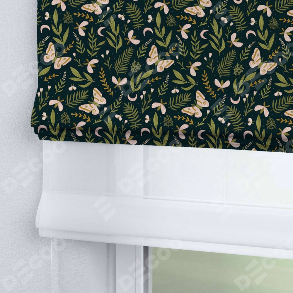 Двойная римская штора «День-ночь» от производителя Cortin предназначена для использования в проёмах. Эта штора уникальна тем, что состоит из двух полотен. На лицевой стороне находится блэкаут с нанесением сублимационной печати «Летняя ночь», обеспечивающий эффективное затемнение. В комплект также входит вторая ткань — легкий белый тюль (артикул: V-01), который добавляет изящества и легкости оформлению окна. Кроме того, доступны и другие разновидности ткани тюль, выбор которых доступен по ссылке .