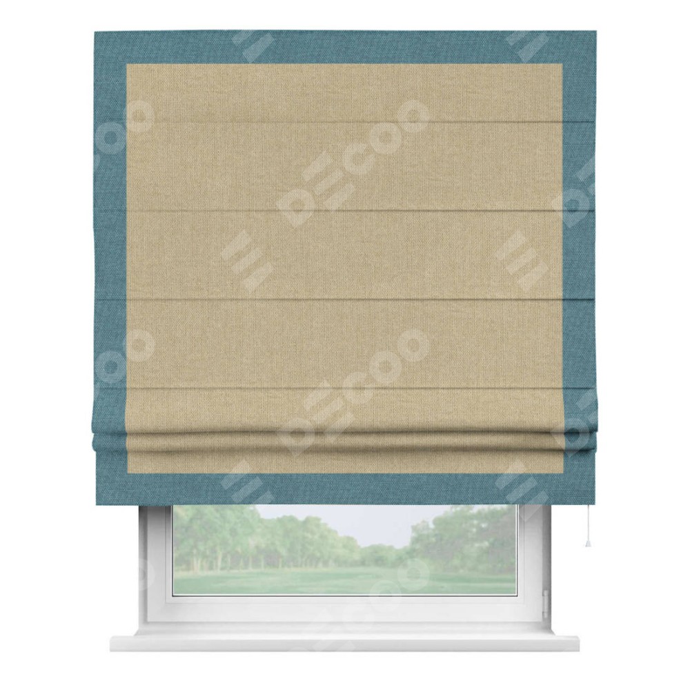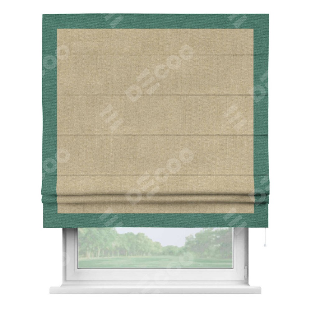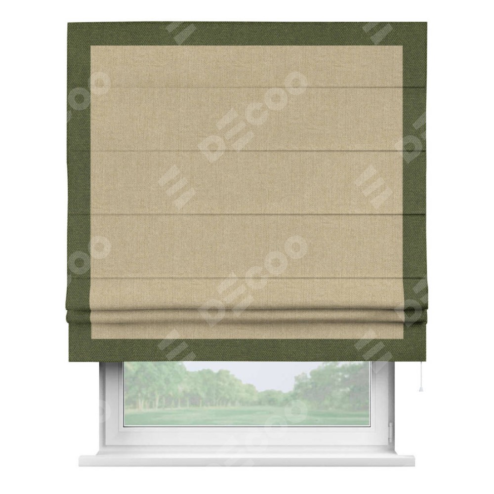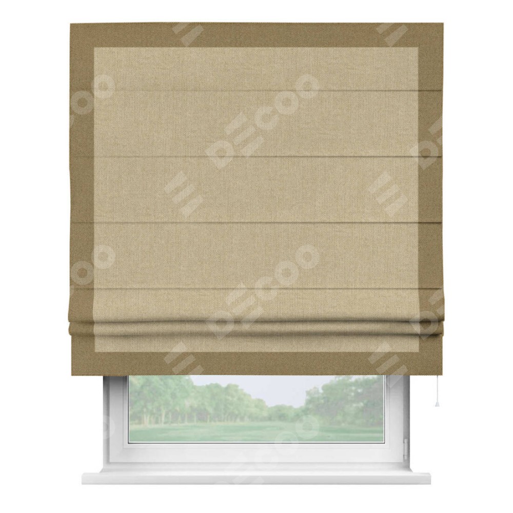 Римская штора «Кортин» для проема, лён димаут песочный с кантом Чесс