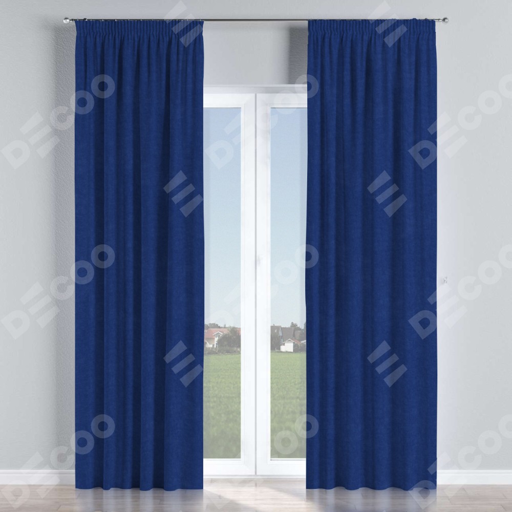 Комплект прямых штор, от производителя «Cortin», пошиты из ткани канвас синий электрик, артикул ткани v-355. С изнаночной стороны в верхней части штор пристрачивается шторная лента с декоративными складками «Карандаш». Для создания элегантных складок прямые шторы шьются по стандарту с коэффициентом 1:2 (на 100 см. ширины проёма 200 см. ширины ткани).