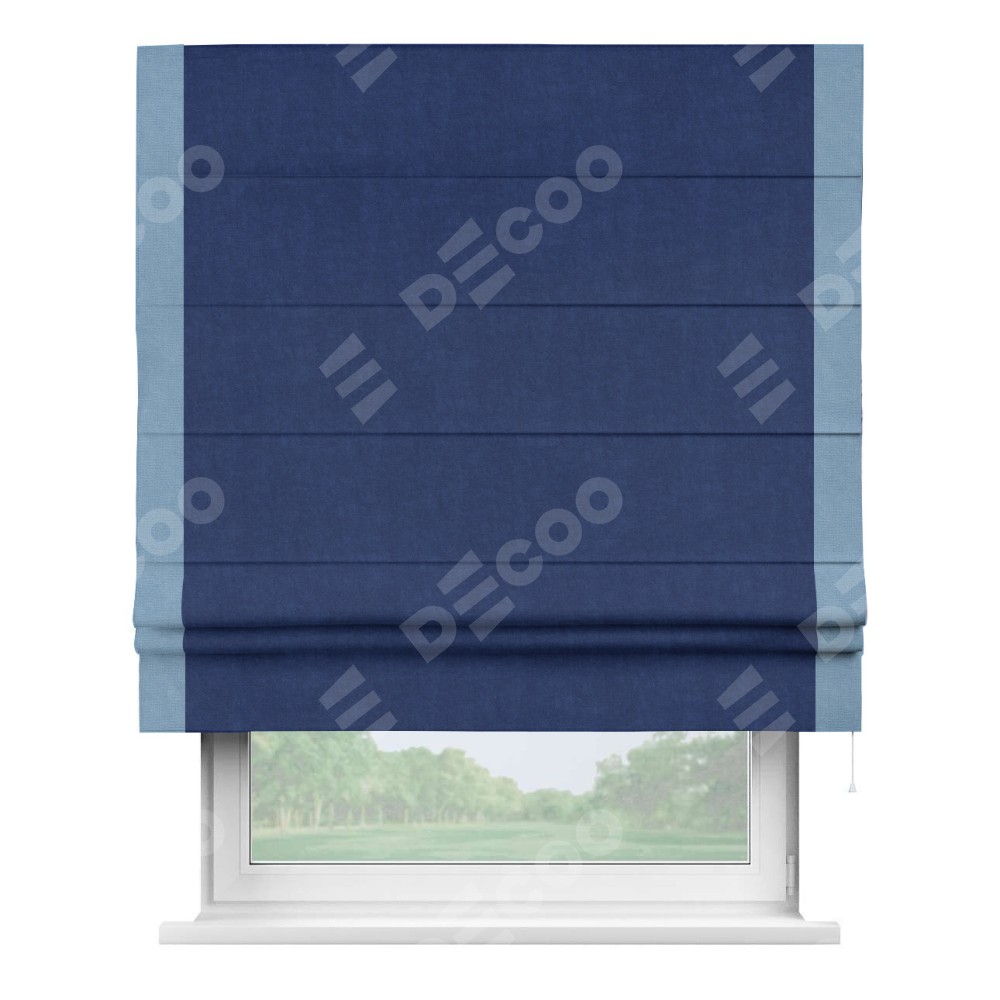 Римская штора «Кортин» для проема, канвас синий электрик, с кантом Стрим Дуо