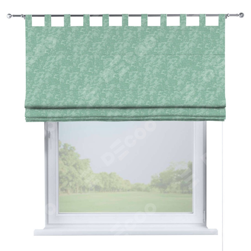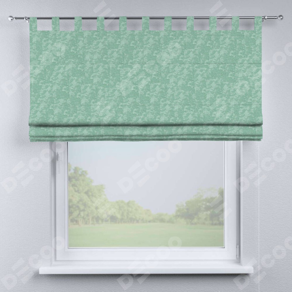Римская штора производителя «Cortin», используется для проёма, пошита из ткани софт мрамор светло-зелёный, артикул ткани 93579. Данная модель пошита на петлях, комплектуется на выбор круглым карнизом и подходит для монтажа на стену. Римская штора на петлях имеет простую систему регулировки высоты, отличительным преимуществом данной модели является простой способ монтажа. Достаточно повесить ее на трубу и штора готова!
