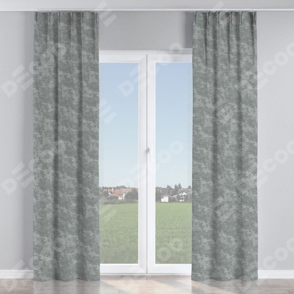 Комплект прямых штор, от производителя «Cortin», пошиты из ткани софт мрамор серый, артикул ткани 93583. С изнаночной стороны в верхней части штор пристрачивается шторная лента с декоративными складками «Кустик». Для создания элегантных складок прямые шторы шьются по стандарту с коэффициентом 1:2 (на 100 см. ширины проёма 200 см. ширины ткани).