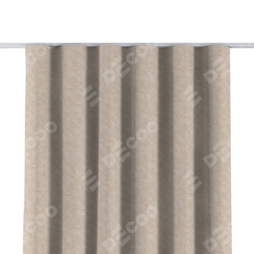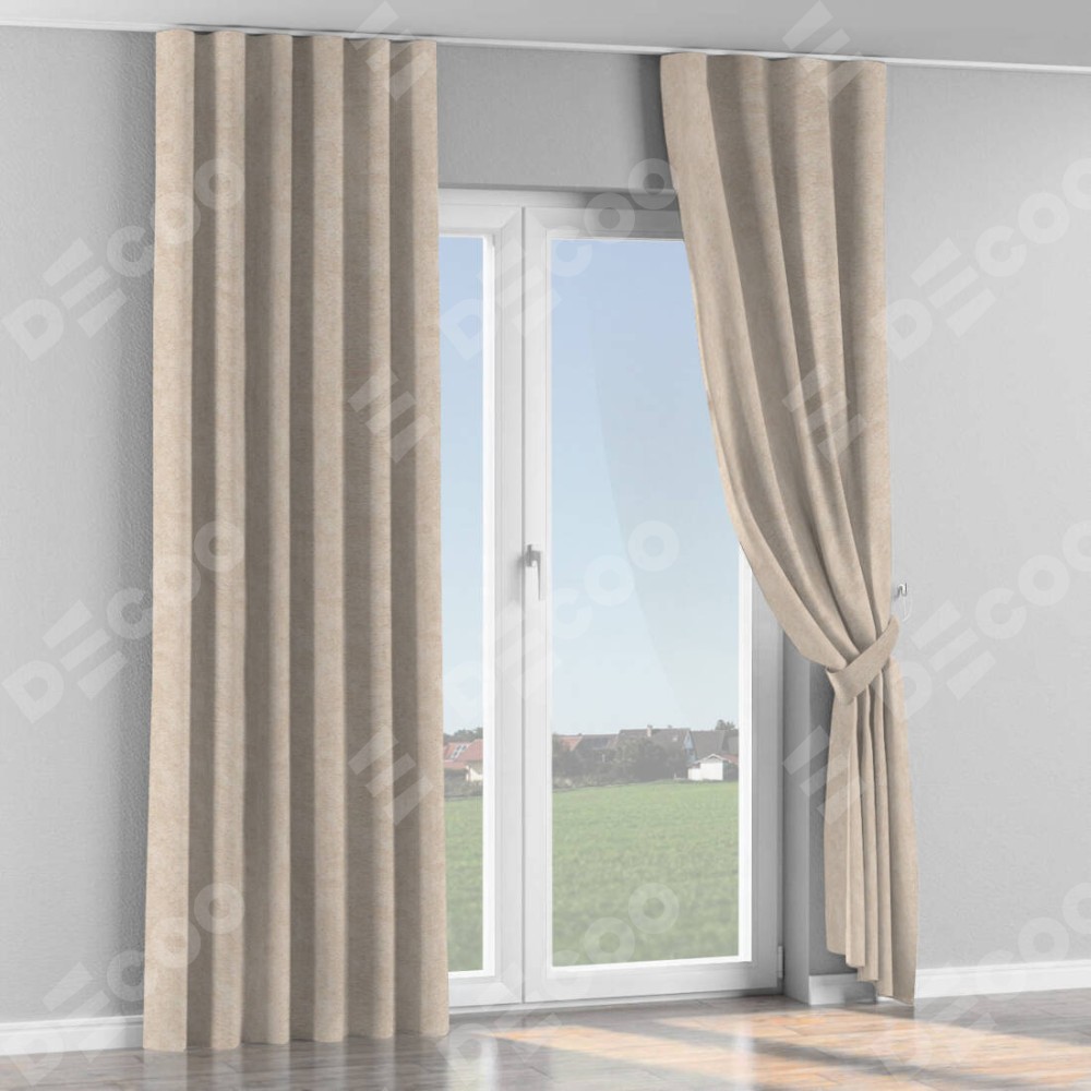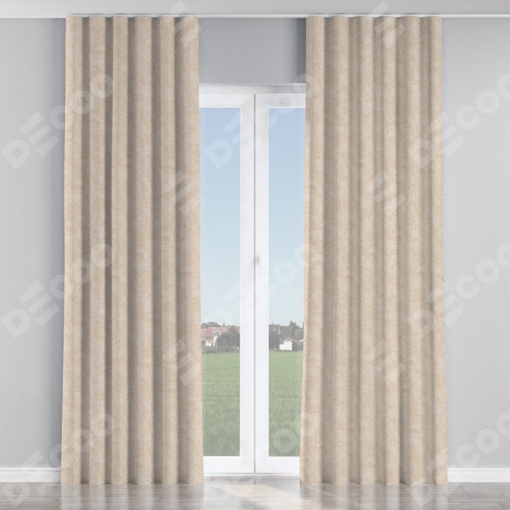 Комплект прямых штор, от производителя «Cortin», пошиты из ткани софт мрамор шампань, артикул ткани 93575. С изнаночной стороны в верхней части штор пристрачивается шторная лента с декоративными складками «Волна». Для создания элегантных складок прямые шторы шьются по стандарту с коэффициентом 1:2 (на 100 см. ширины проёма 200 см. ширины ткани).
