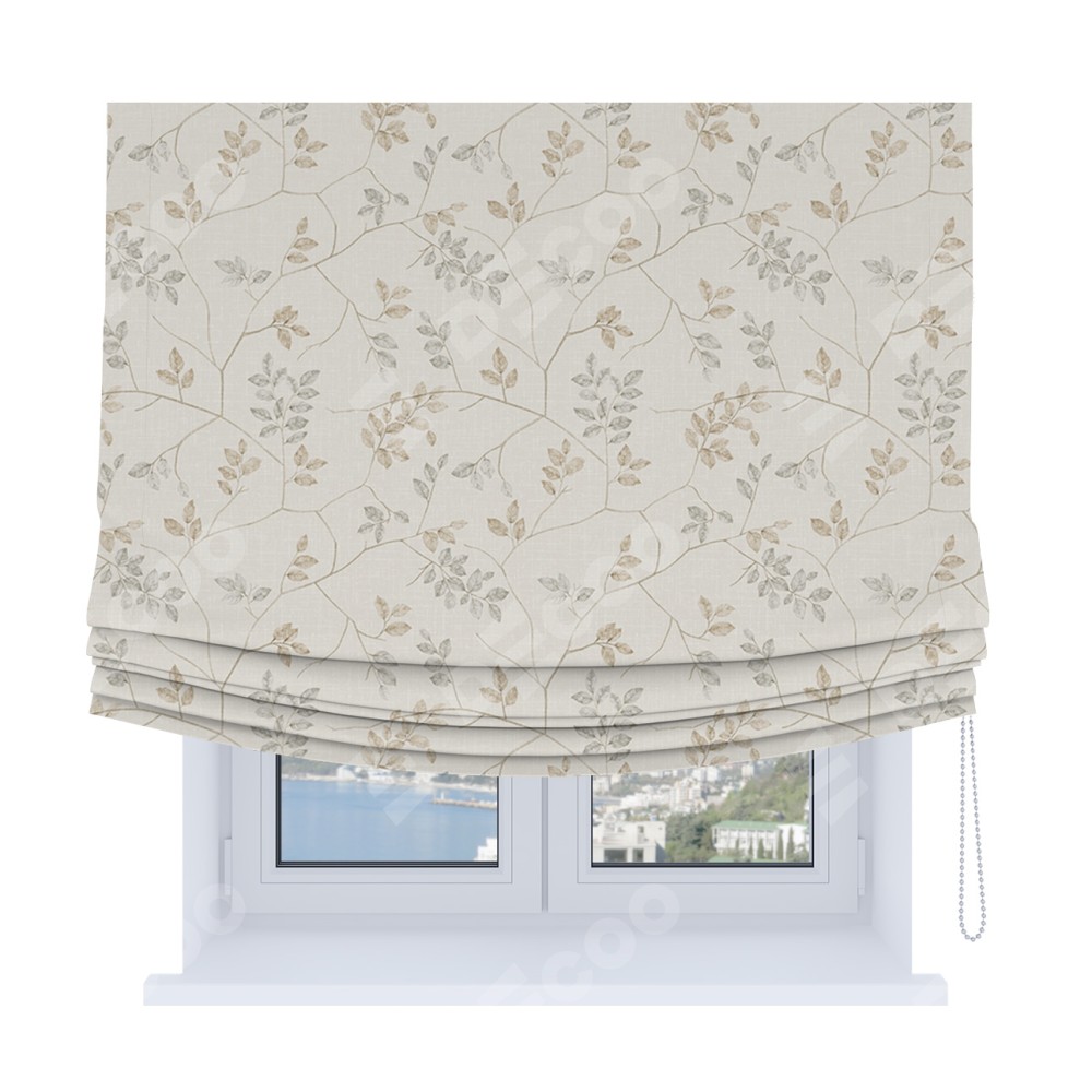 Римская штора Soft производителя «Cortin», используется для проёма, пошита из ткани блэкаут с нанесением сублимационной печати «Флора бежевый». Имеет универсальный механизм и подходит для монтажа: на потолок, на стену и в нишу. В отличие от стандартных римских штор, римская штора Soft не имеет горизонтальных вставок и нижнего отвеса. Это позволяет ткани произвольно драпироваться в свободные мягкие складки.
