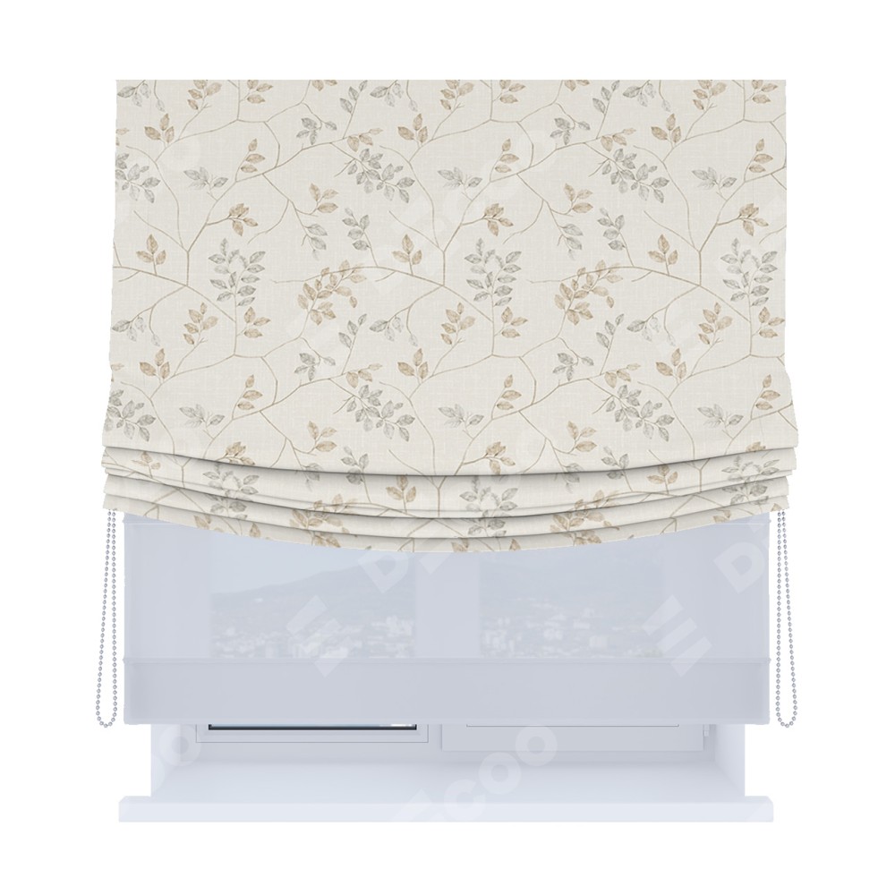 Римская штора «Кортин», день-ночь с мягкими складками, «Флора бежевый»