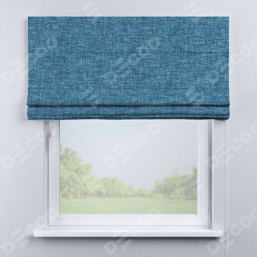 Классическая римская штора производителя «Cortin», пошита из ткани рогожка димаут джинс, артикул: 91026. Имеет универсальный механизм и подходит для монтажа: на потолок, на стену и в нишу.