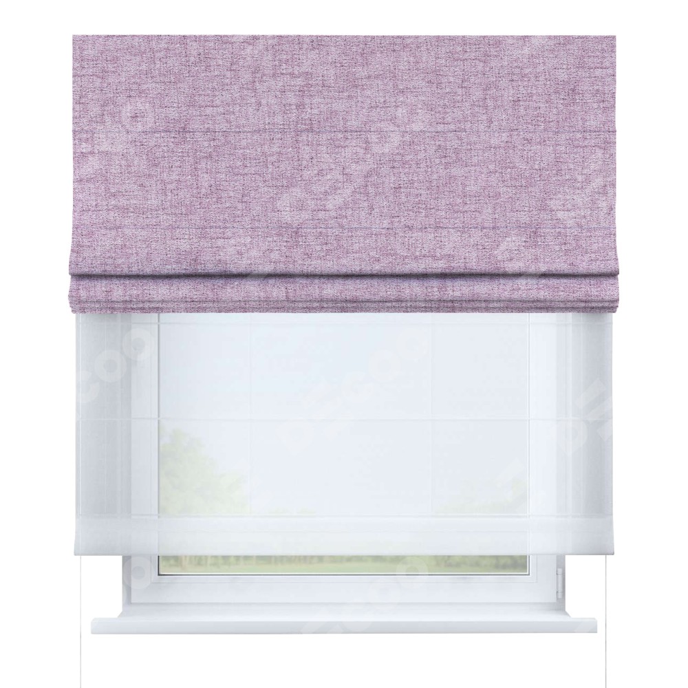 Двойная римская штора «День-ночь» от производителя Cortin предназначена для использования в проёмах. Эта штора уникальна тем, что состоит из двух полотен. На лицевой стороне находится рогожка димаут розовый (артикул: 91031), обеспечивающий эффективное затемнение. В комплект также входит вторая ткань — легкий белый тюль (артикул: V-01), который добавляет изящества и легкости оформлению окна. Кроме того, доступны и другие разновидности ткани тюль, выбор которых доступен по ссылке .