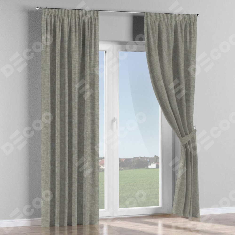 Комплект прямых штор, от производителя «Cortin», пошиты из ткани рогожка димаут серый дуб, артикул ткани 91028. С изнаночной стороны в верхней части штор пристрачивается шторная лента с декоративными складками «Карандаш». Для создания элегантных складок прямые шторы шьются по стандарту с коэффициентом 1:2 (на 100 см. ширины проёма 200 см. ширины ткани).
