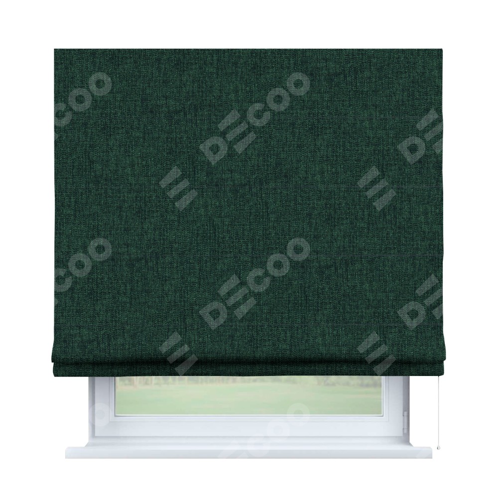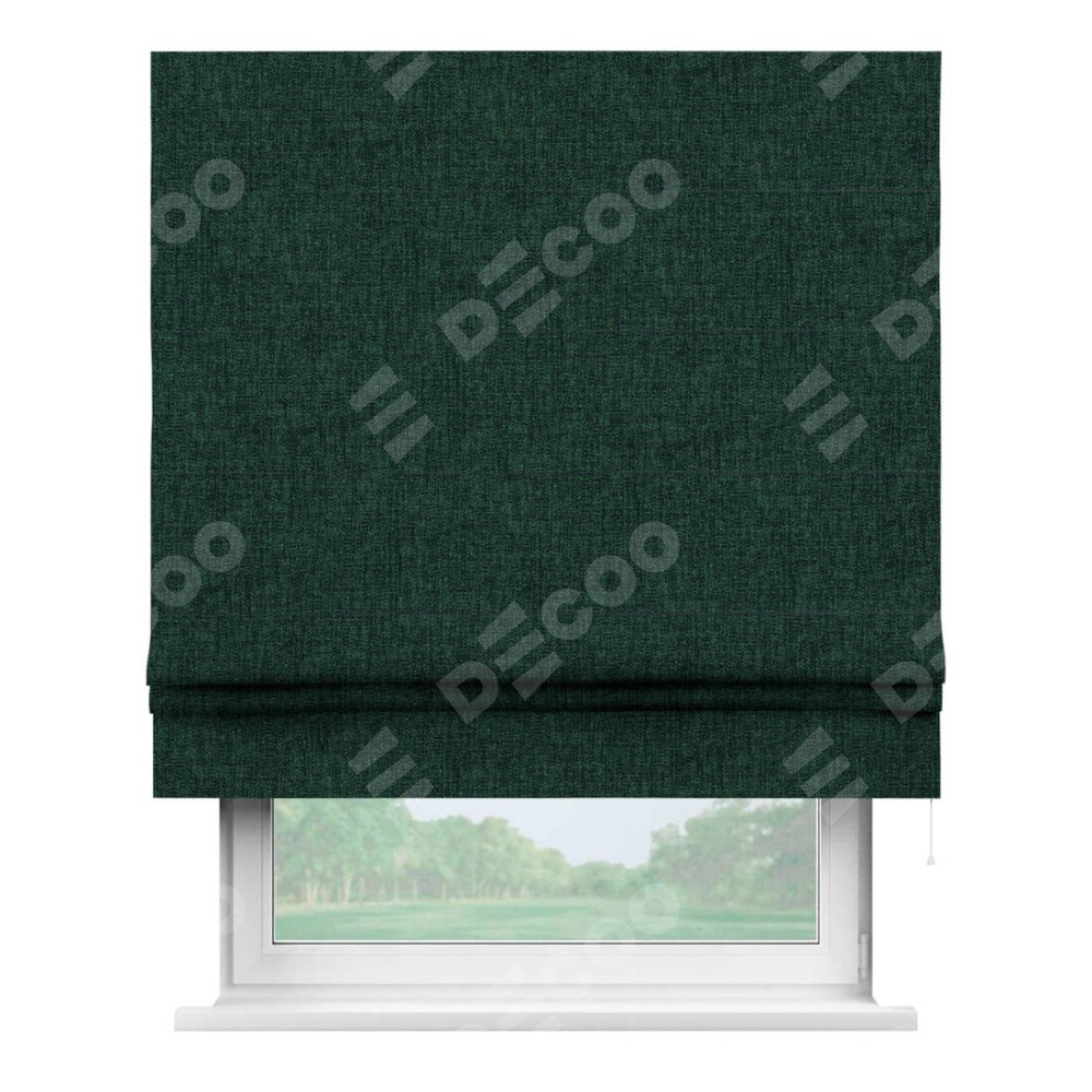 Классическая римская штора производителя «Cortin», пошита из ткани рогожка димаут тёмно-зелёный, артикул: 91022. Имеет универсальный механизм и подходит для монтажа: на потолок, на стену и в нишу.