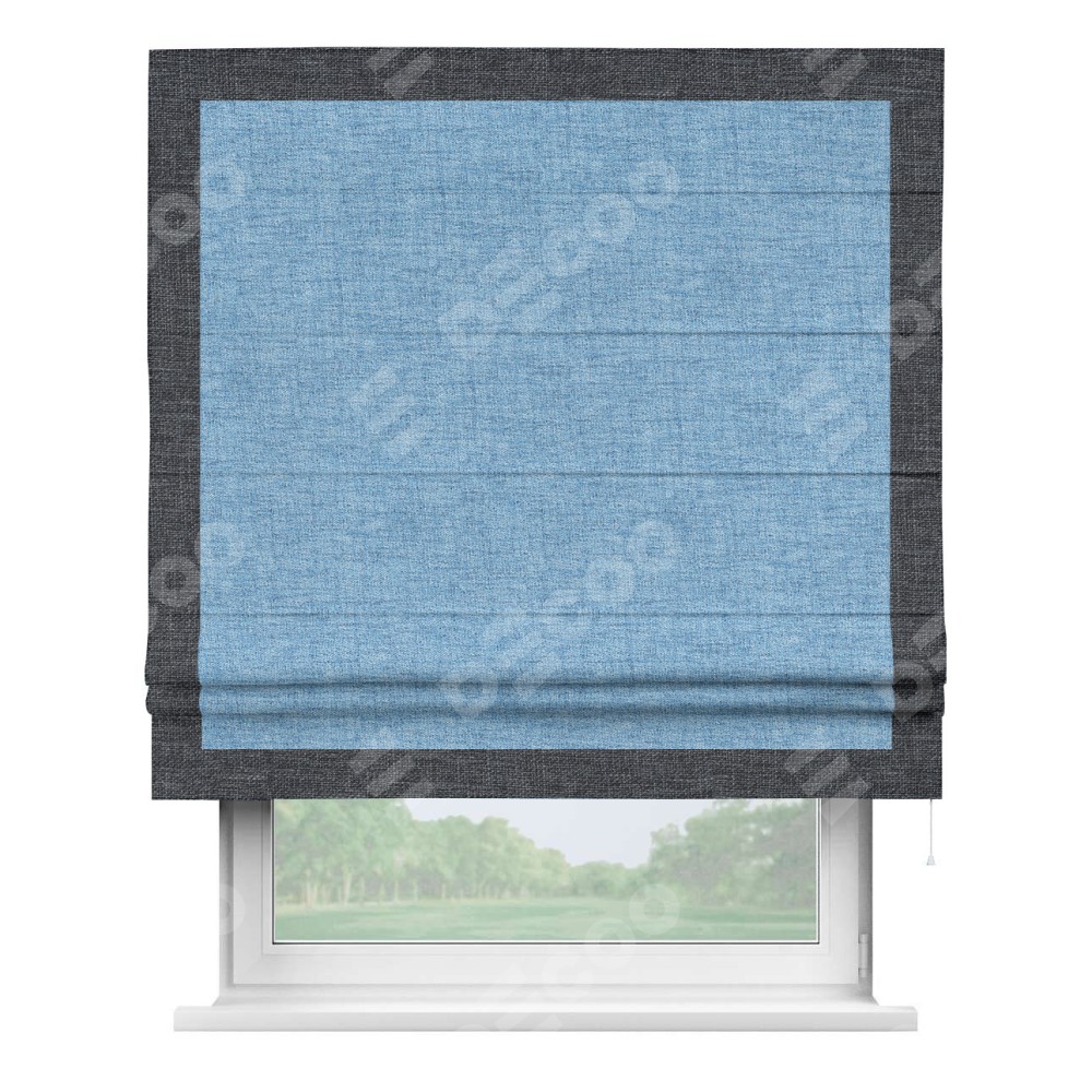 Римская штора «Кортин» для проёма, рогожка димаут голубой, с кантом Чесс