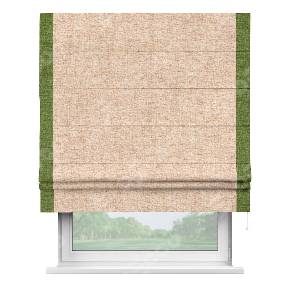 Римская штора «Кортин» для проёма, рогожка димаут персиковый, с кантом Стрим Дуо
