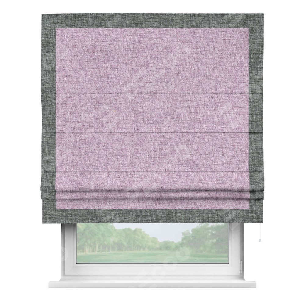 Римская штора «Кортин» для проёма, рогожка димаут розовый, с кантом Чесс