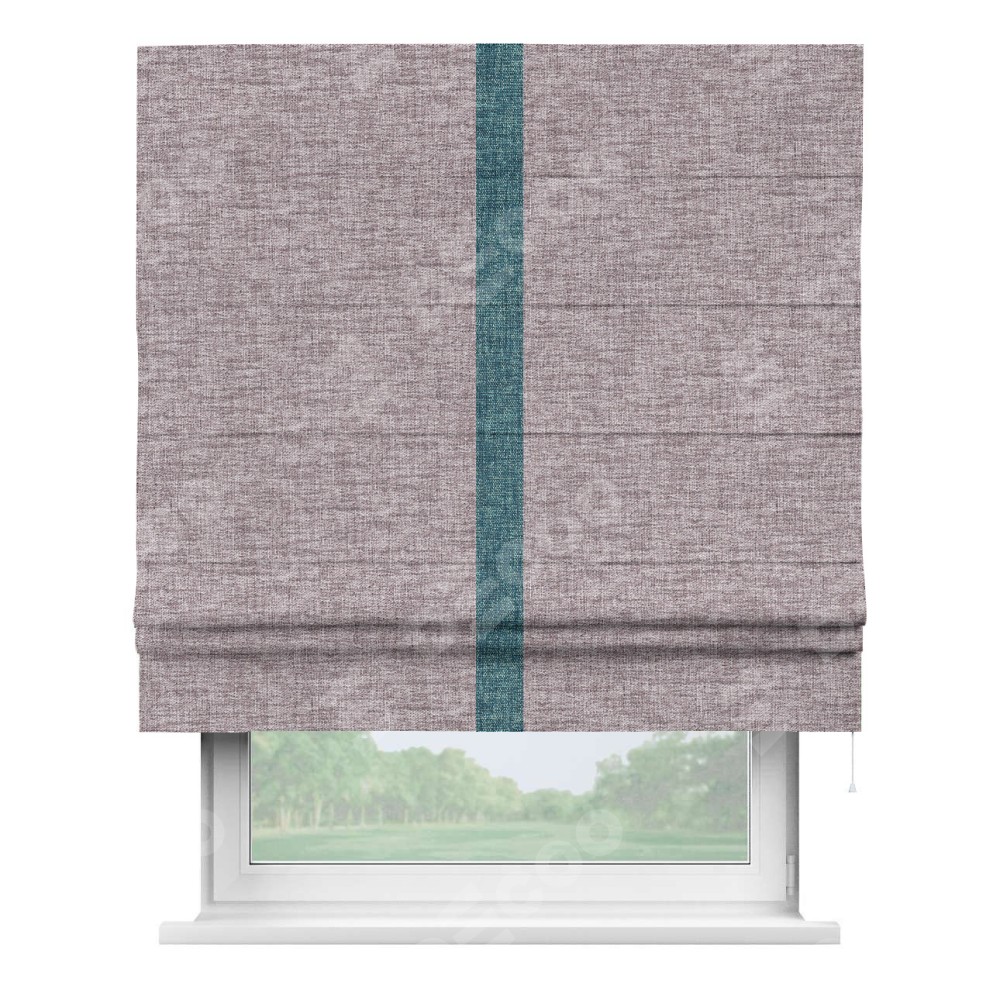 Римская штора пошита из ткани рогожка димаут розовый кварц, артикул: 91030, с отделкой кантом «Хайвэй» представляет собой уникальное и смелое дизайнерское решение, где кант расположен вертикально посередине шторы. Этот дизайн не только выделяет штору среди других вариантов оформления окон, но и создает интересный визуальный акцент, привлекая внимание к центру окна и разделяя штору на визуальные зоны. Такой нестандартный подход добавляет динамичности интерьеру и может быть использован для подчеркивания особенностей оформления помещения.