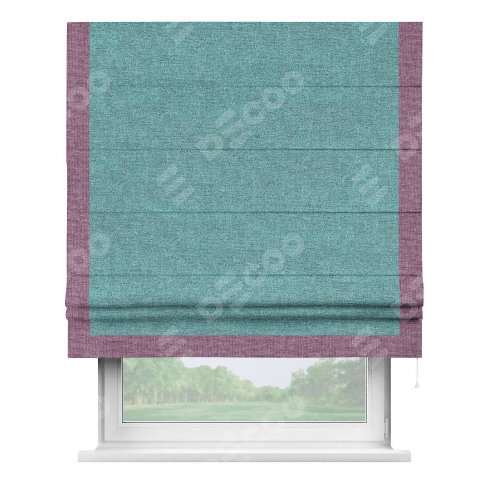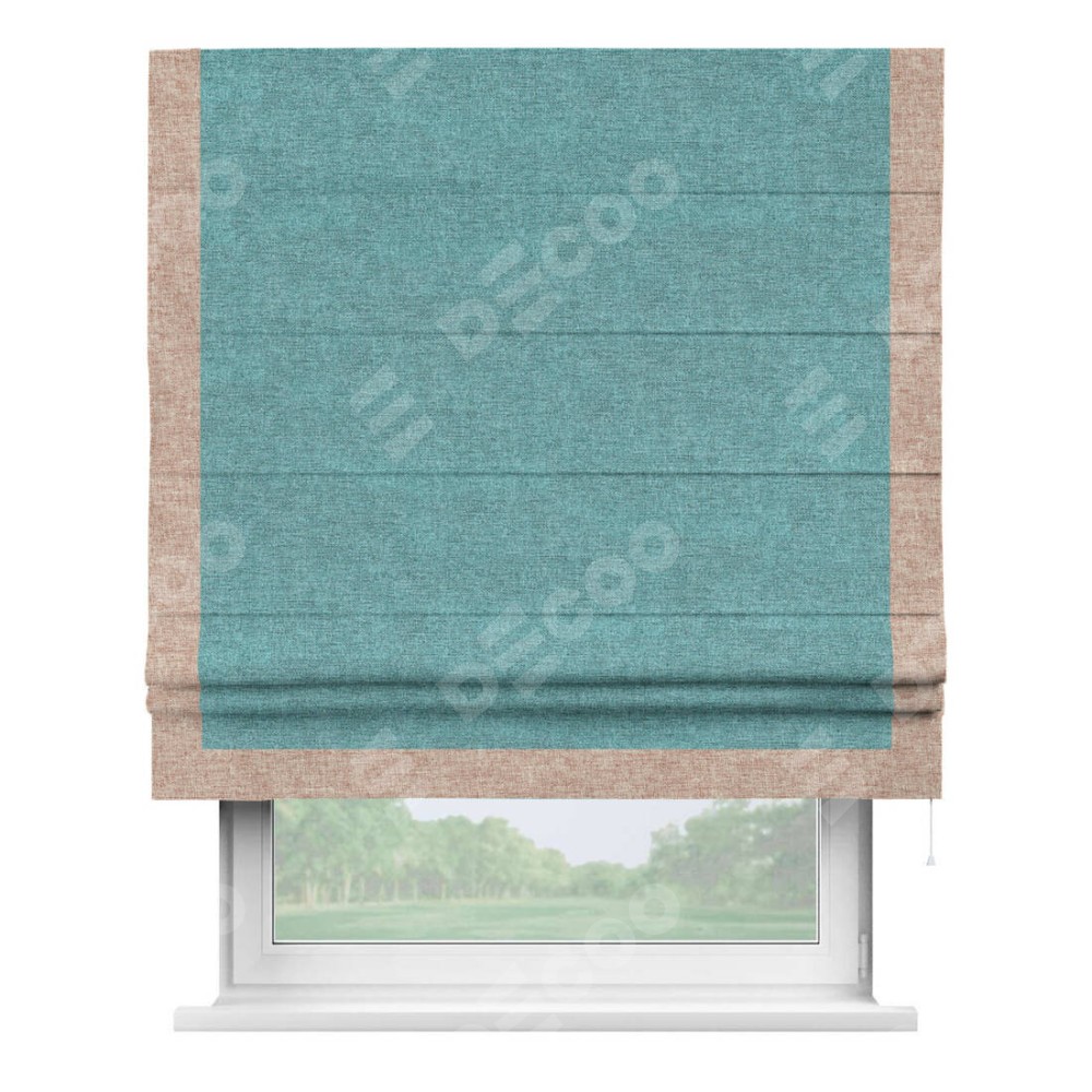 Римская штора с отделкой кантом «Виктория», пошита из ткани лён кашемир бирюзовый, артикул: 17214. представляет собой элегантное решение для оконного оформления. Кант по бокам и снизу шторы добавляет изысканности и аккуратности внешнему виду, подчеркивая линии и форму шторы. Этот элемент декора не только украшает, но и выполняет практическую функцию, защищая края ткани от износа. Кант может быть выполнен в контрастном или гармонирующем цвете, что позволяет добиться различных стилевых эффектов и легко вписать штору в интерьер комнаты.