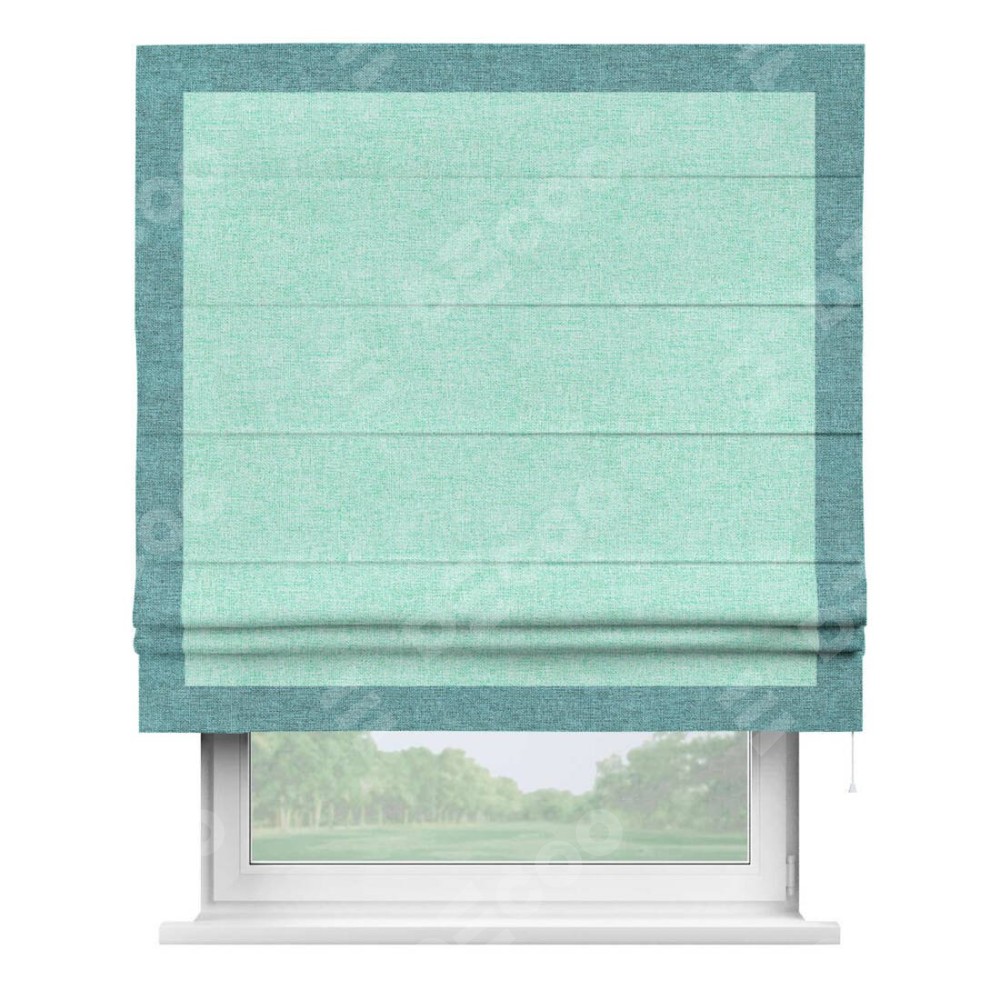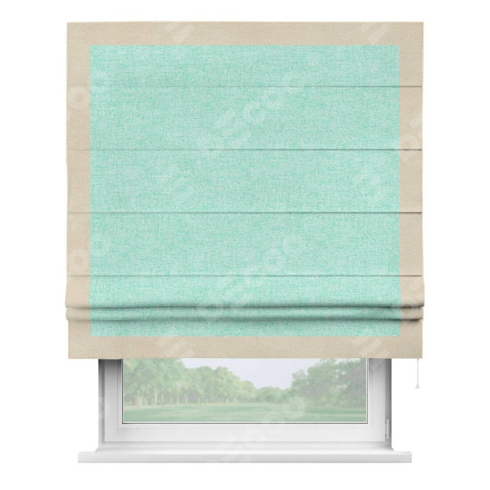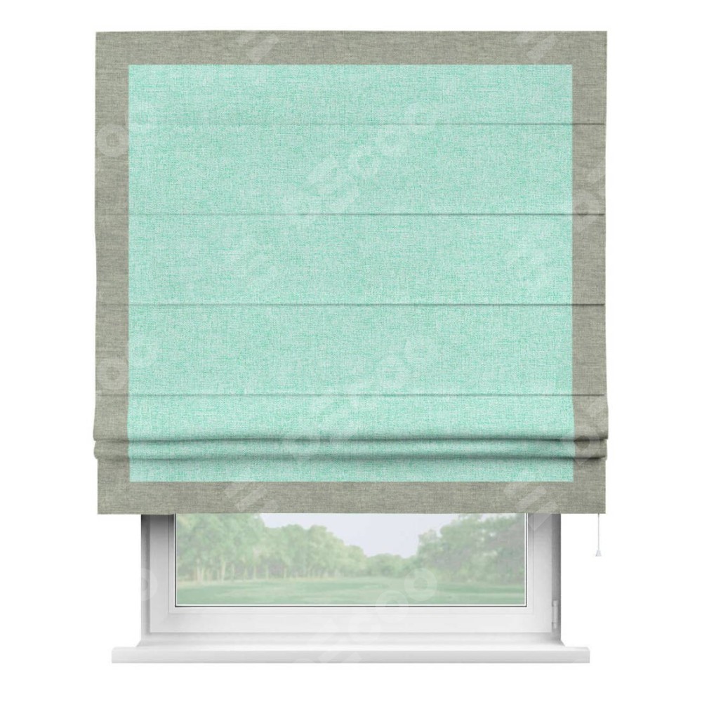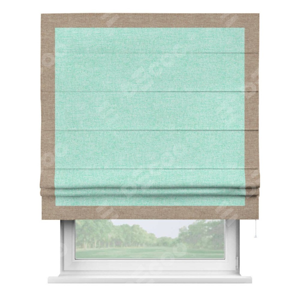 Римская штора «Кортин» для проёма, лён кашемир мятный, с кантом Чесс