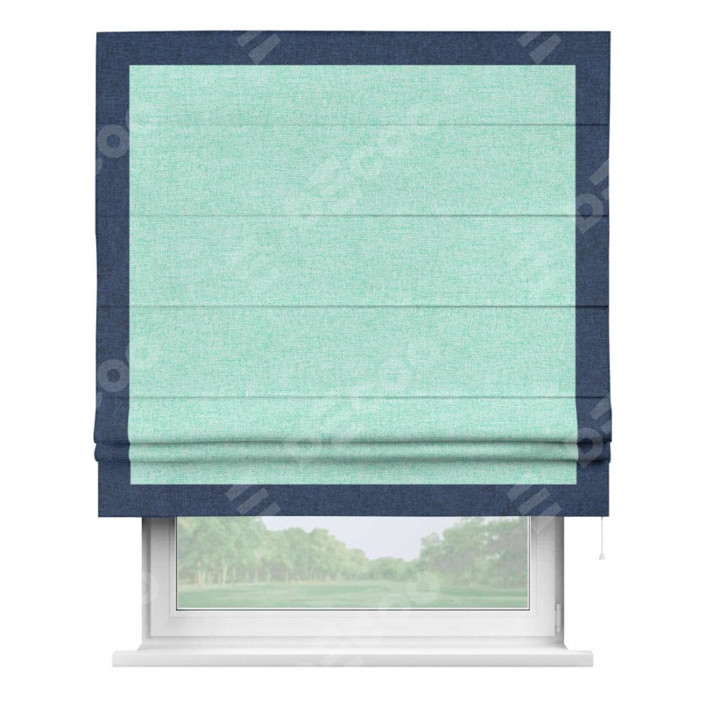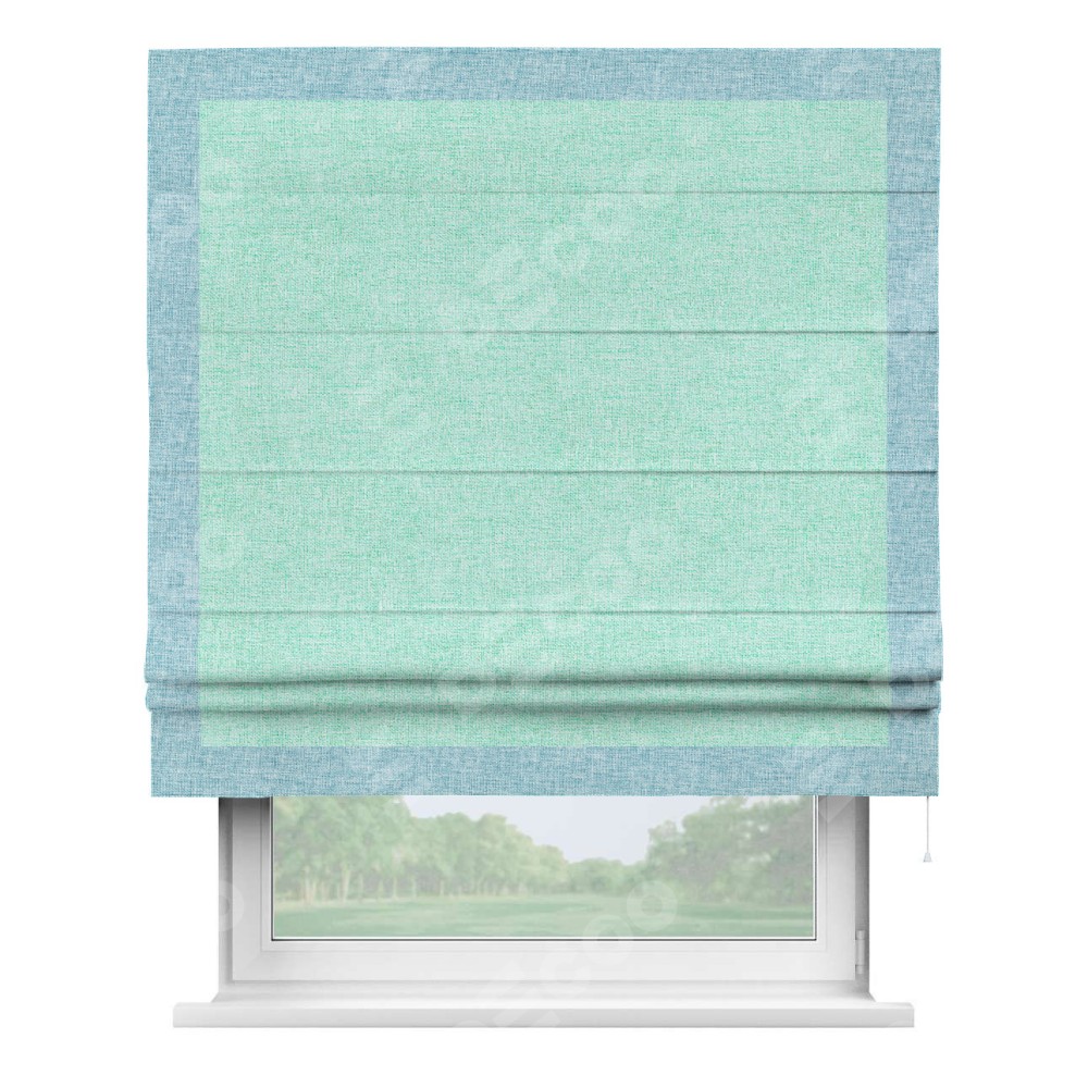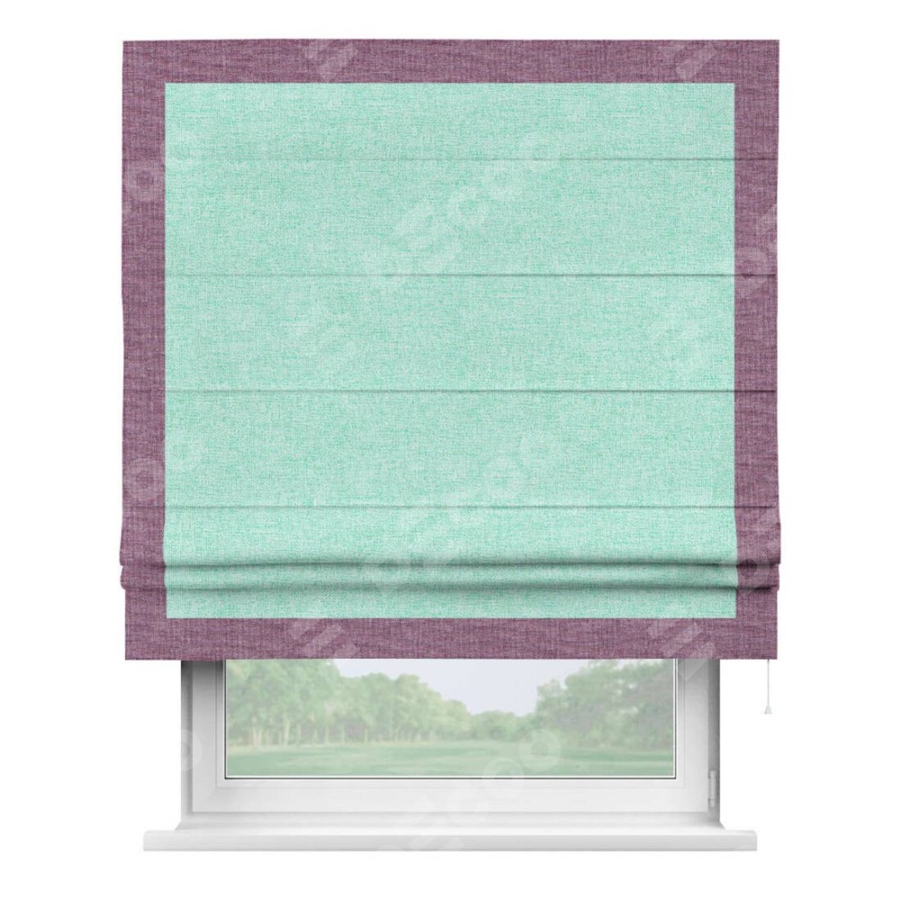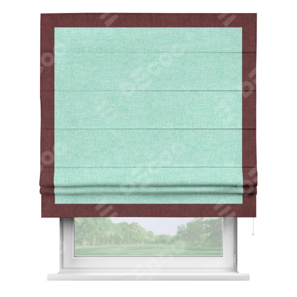 Римская штора «Кортин» для проёма, лён кашемир мятный, с кантом Чесс