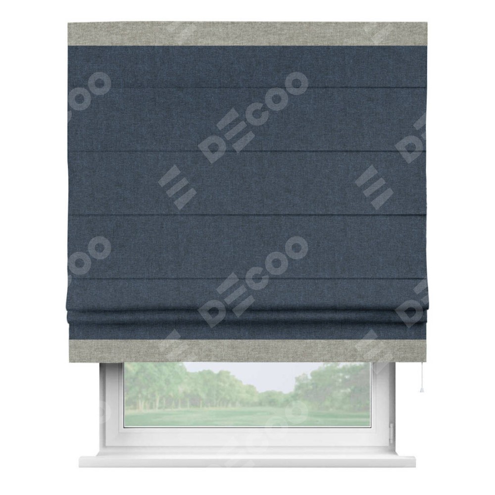 Римская штора «Кортин» для проёма, лён кашемир синий, с кантом Горизонт
