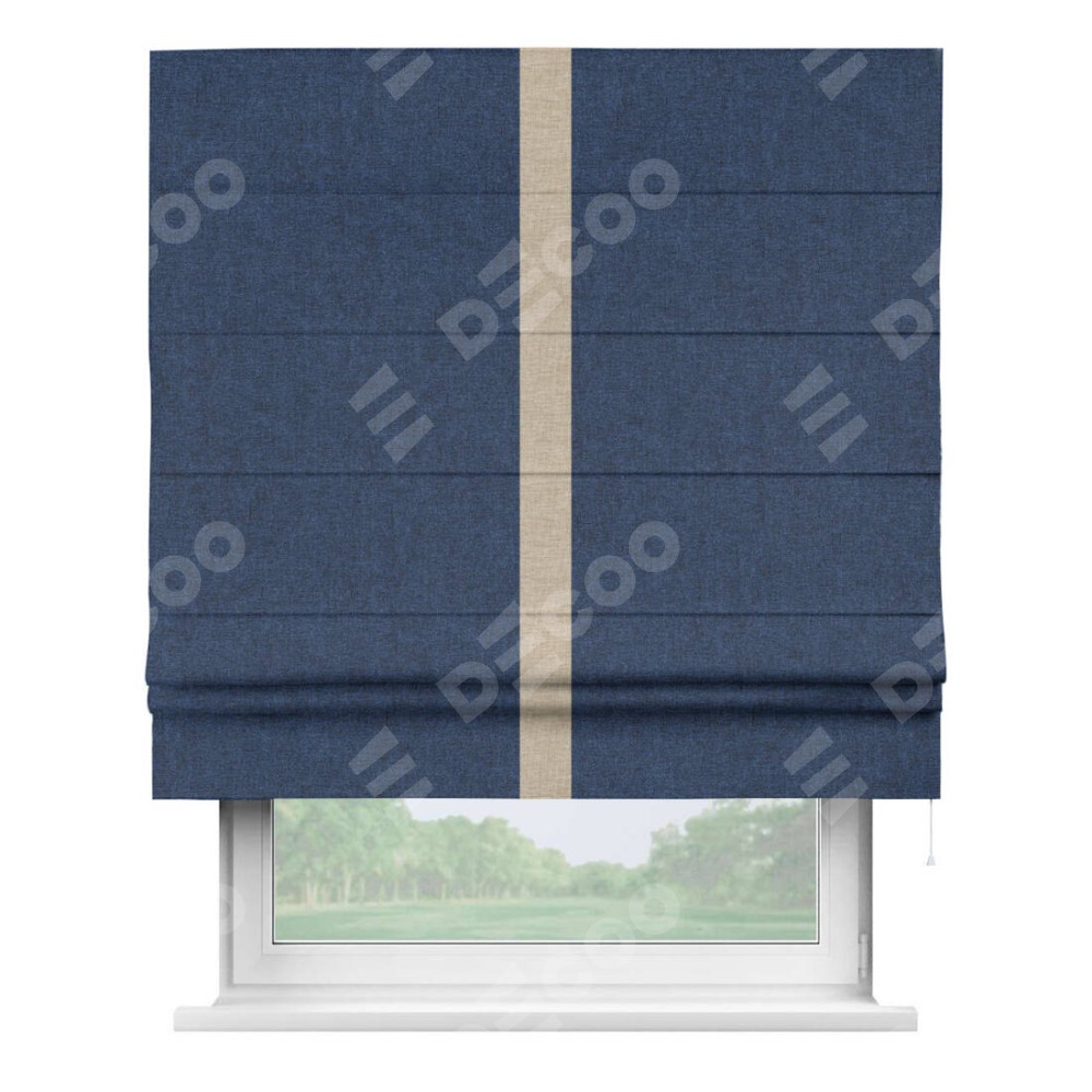 Римская штора «Кортин» для проёма, лён кашемир тёмно-синий, с кантом Хайвэй