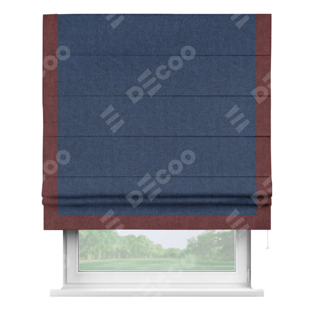 Римская штора «Кортин» для проёма, лён кашемир тёмно-синий, с кантом Виктория
