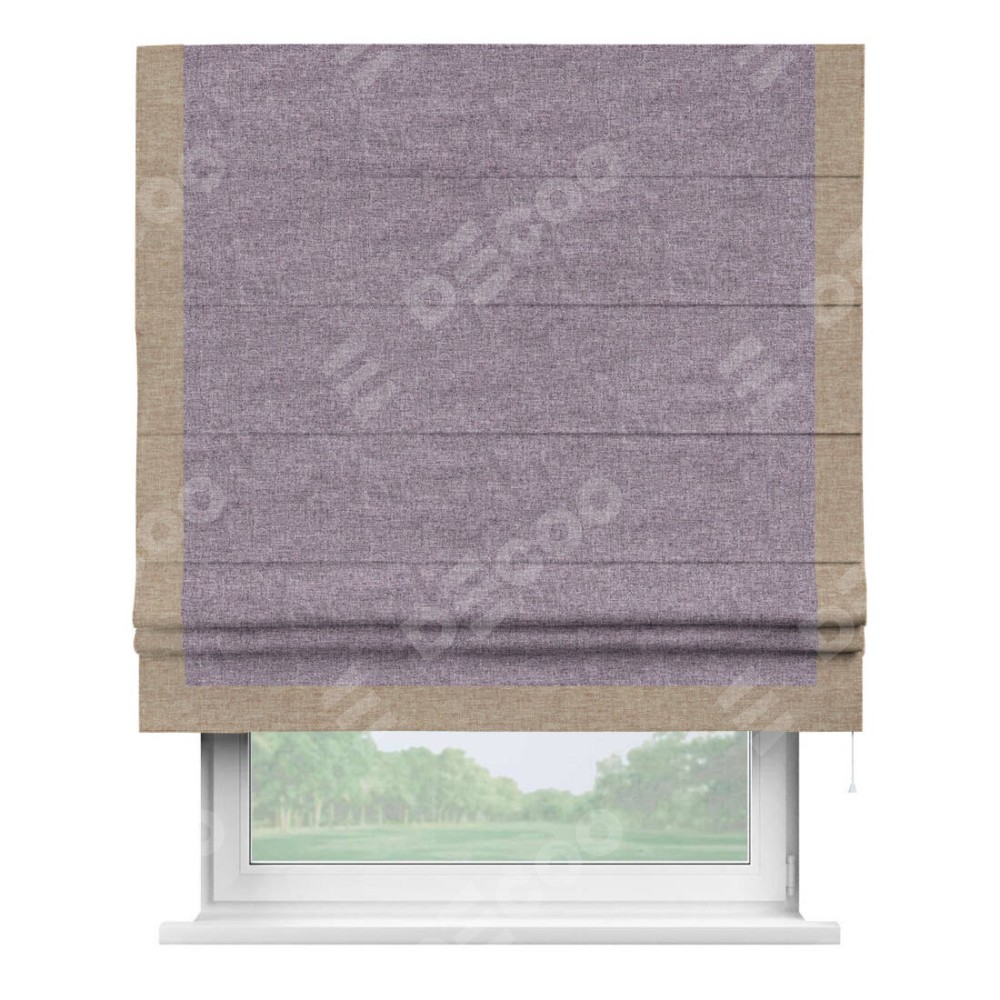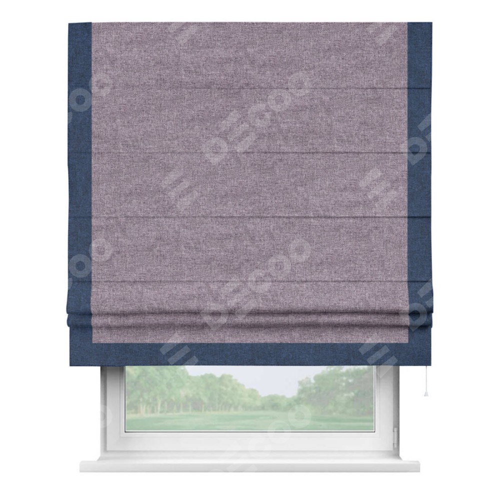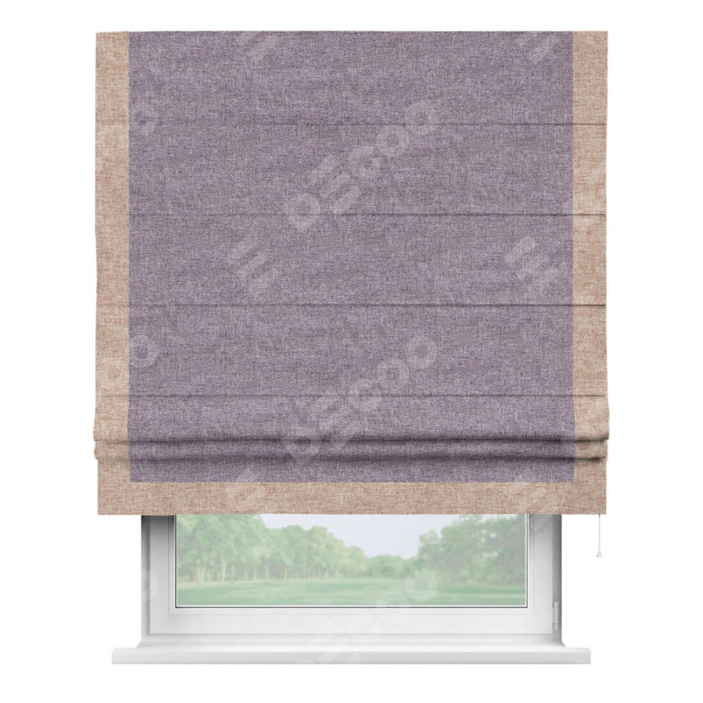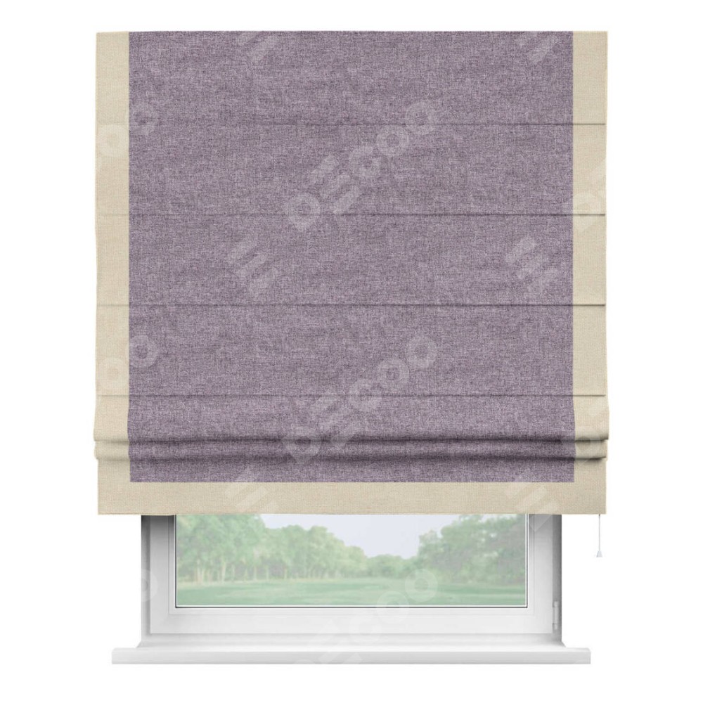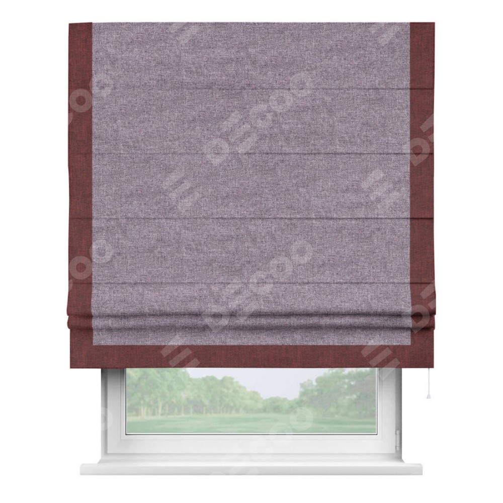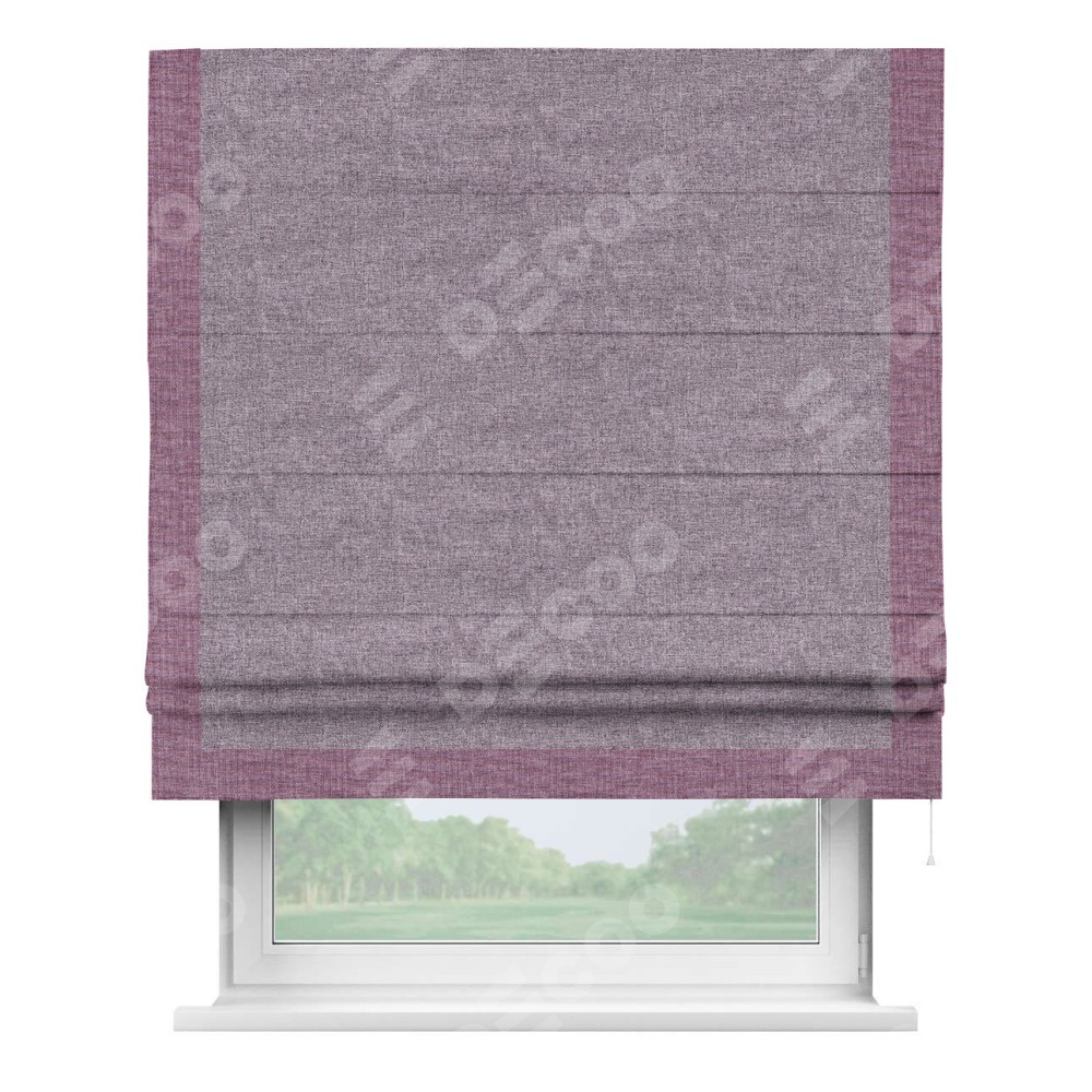 Римская штора «Кортин» для проёма, лён кашемир фиолетовый, с кантом Виктория