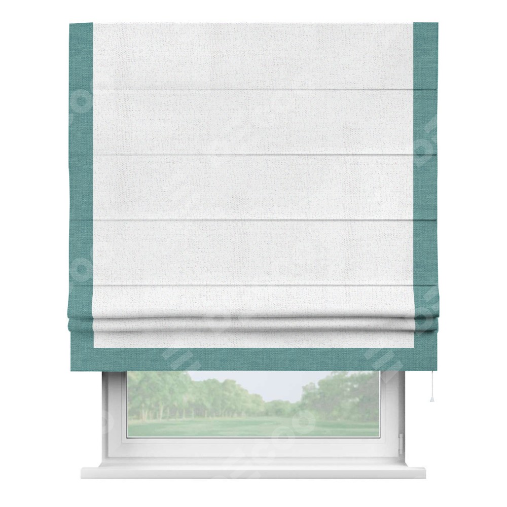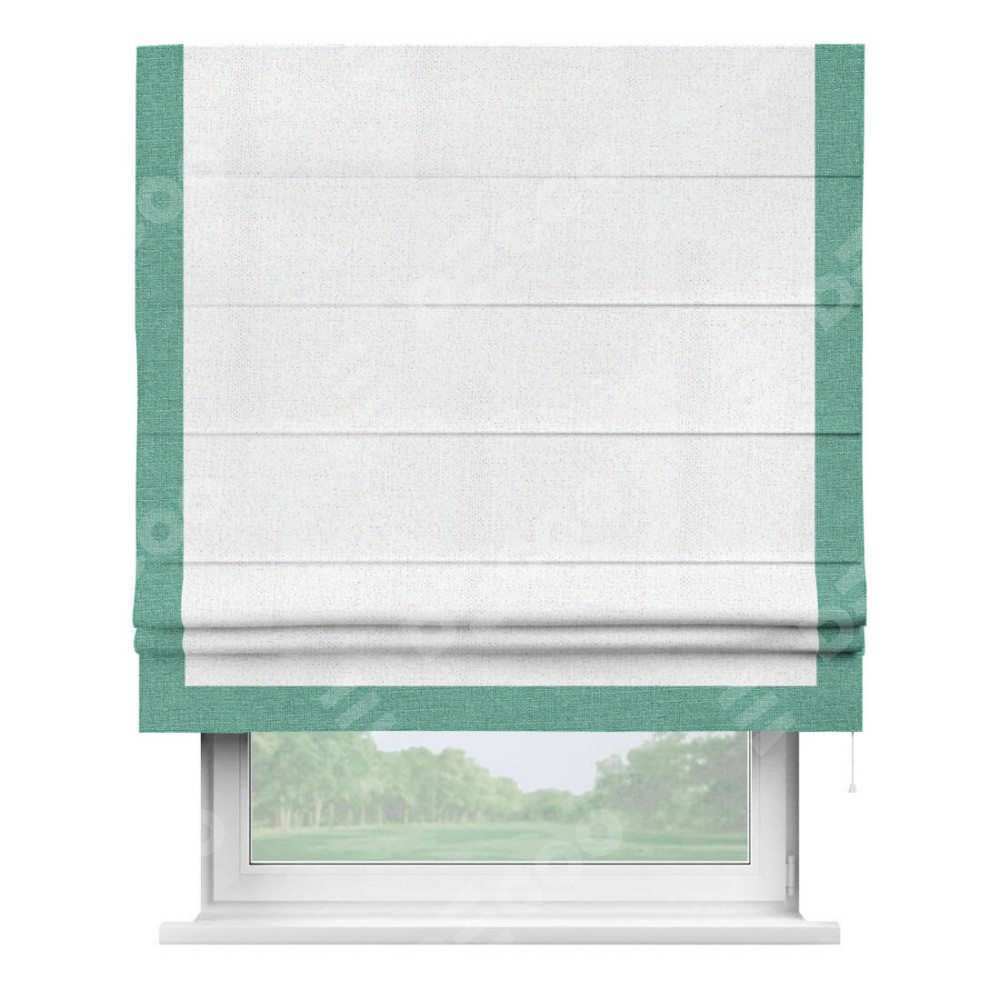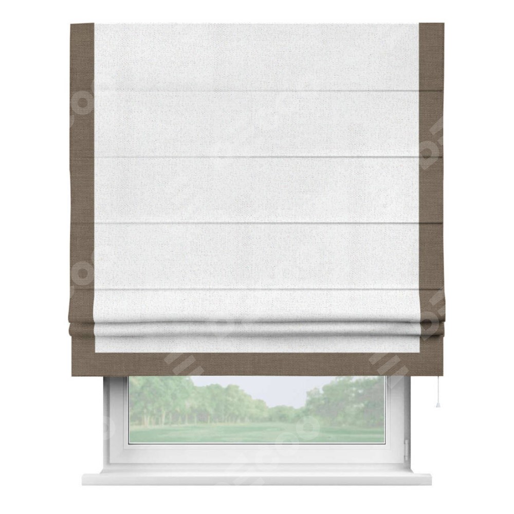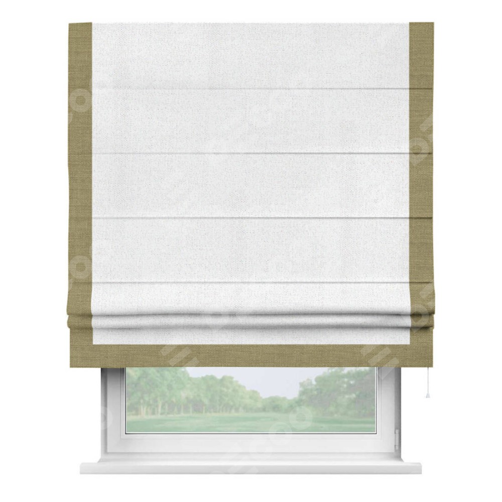 Римская штора «Кортин» для проема, лён белоснежный, с кантом Виктория