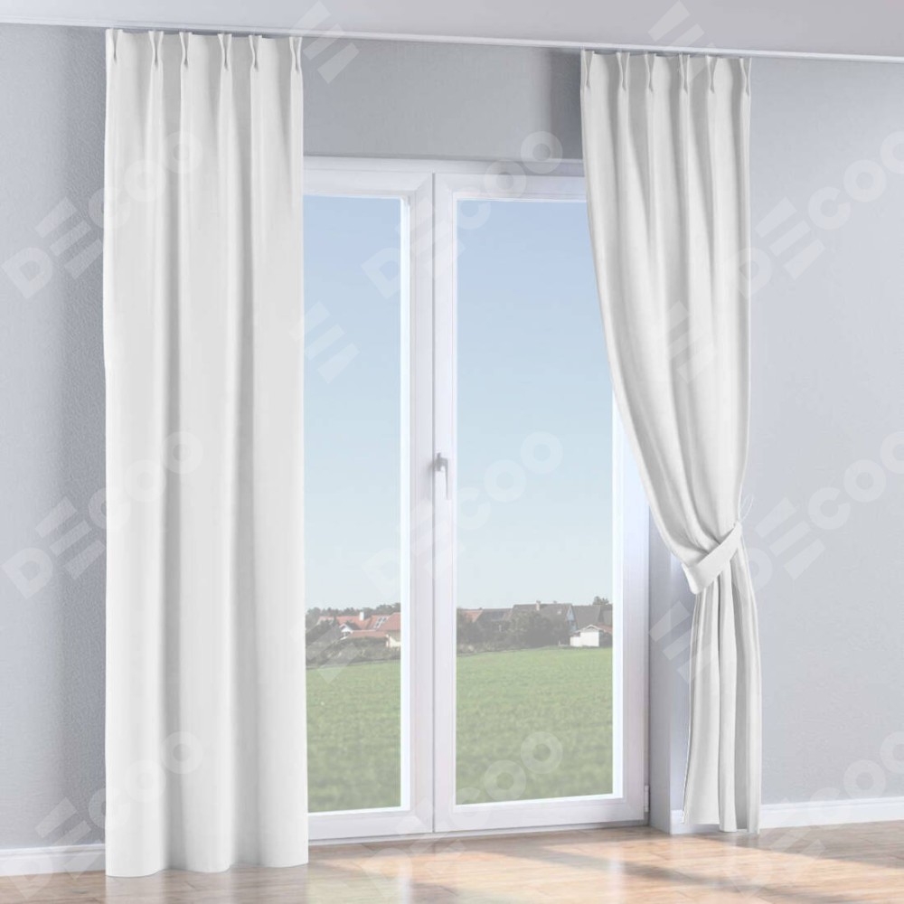 Комплект прямых штор, от производителя «Cortin», пошиты из ткани вайтаут однотонная белая, артикул ткани 93935. С изнаночной стороны в верхней части штор пристрачивается шторная лента с декоративными складками «Кустик». Для создания элегантных складок рекомендуемый коэффициент 1:2 (на 100 см. ширины проёма 200 см. ширины ткани). Важно! Ширина штор указана без учёта коэффициента сборки!