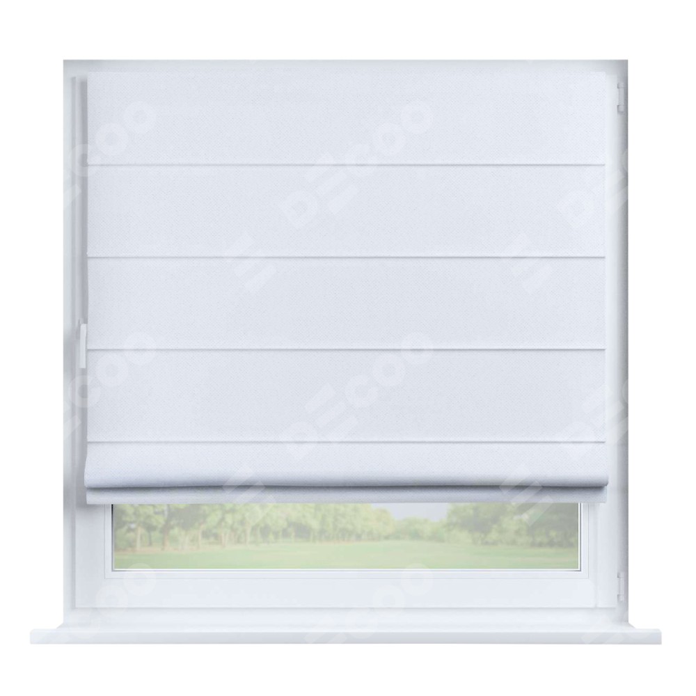 Римская штора производителя «Cortin», устанавливается на створку окна, пошита из ткани лён димаут белый, артикул 28. Штора шьётся по индивидуальным размерам, для данного типа римской шторы возможная ширина от 35 до 150 см., высота до 250 см.