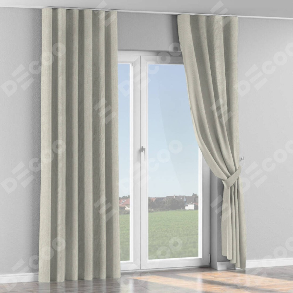 Комплект прямых штор, от производителя «Cortin», пошиты из ткани лён димаут светло-бежевый, артикул ткани 140649. С изнаночной стороны в верхней части штор пристрачивается шторная лента с декоративными складками «Волна». Для создания элегантных складок рекомендуемый коэффициент 1:2 (на 100 см. ширины проёма 200 см. ширины ткани). Важно! Ширина штор указана без учёта коэффициента сборки!