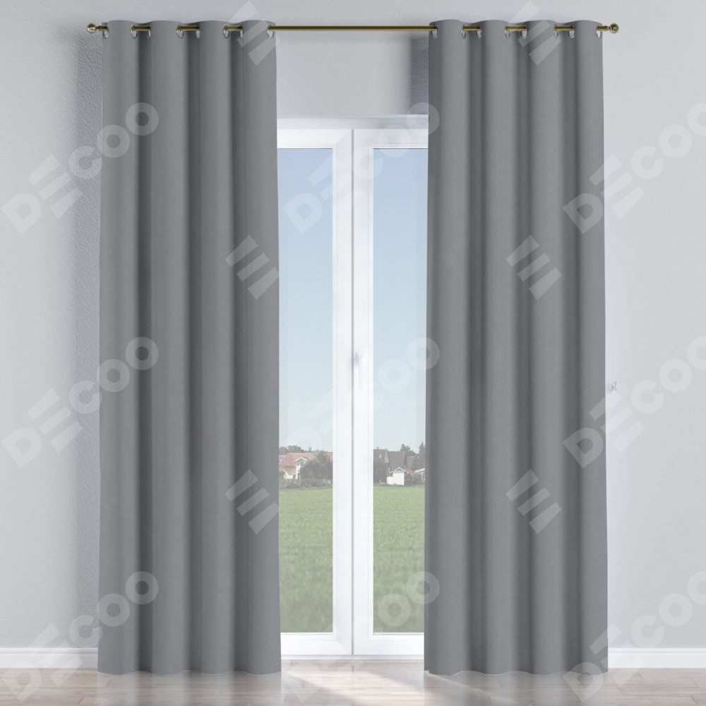 Комплект прямых штор, от производителя «Cortin», пошиты из ткани однотонный блэкаут серый, артикул ткани 146436. Данная модель пошита на люверсах, комплектуется на выбор круглым карнизом и подходит для монтажа на стену или потолок. Для создания элегантных складок рекомендуемый коэффициент 1:2 (на 100 см. ширины проёма 200 см. ширины ткани). Важно! Ширина штор указана без учёта коэффициента сборки!