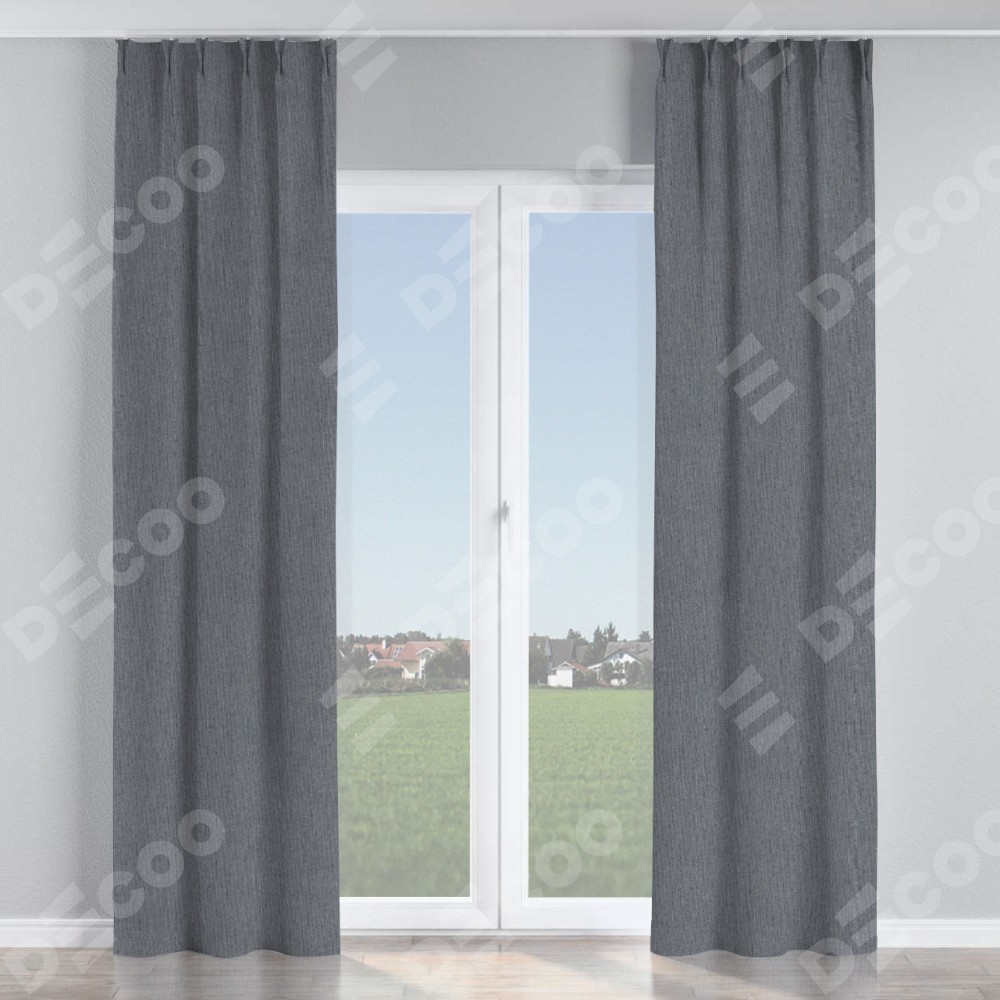 Комплект прямых штор, от производителя «Cortin», пошиты из ткани лён блэкаут тёмно-серый, артикул ткани 139663. С изнаночной стороны в верхней части штор пристрачивается шторная лента с декоративными складками «Кустик». Для создания элегантных складок рекомендуемый коэффициент 1:2 (на 100 см. ширины проёма 200 см. ширины ткани). Важно! Ширина штор указана без учёта коэффициента сборки!