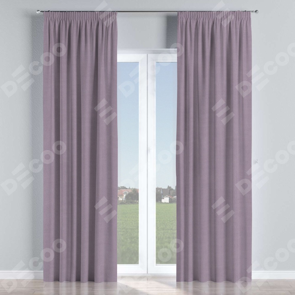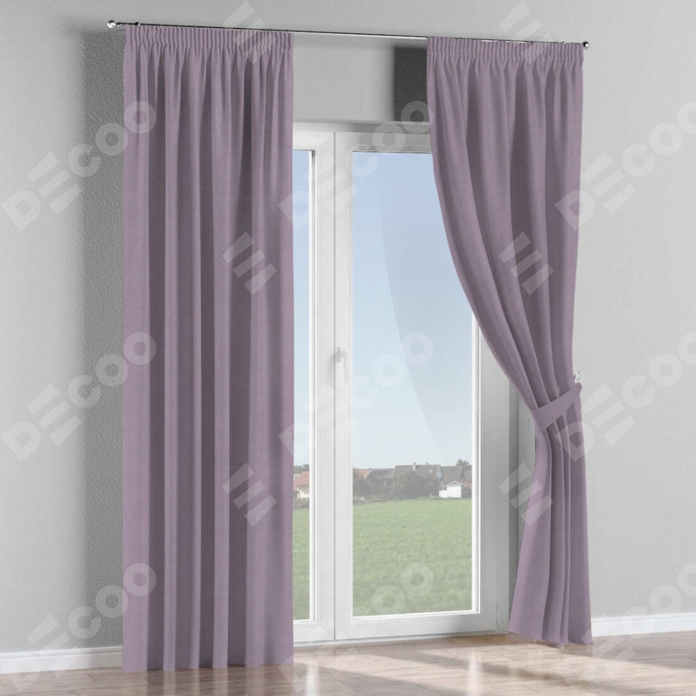 Комплект прямых штор, от производителя «Cortin», пошиты из ткани однотонный блэкаут лиловый, артикул ткани 91577. С изнаночной стороны в верхней части штор пристрачивается шторная лента с декоративными складками «Карандаш». Для создания элегантных складок рекомендуемый коэффициент 1:2 (на 100 см. ширины проёма 200 см. ширины ткани). Важно! Ширина штор указана без учёта коэффициента сборки!