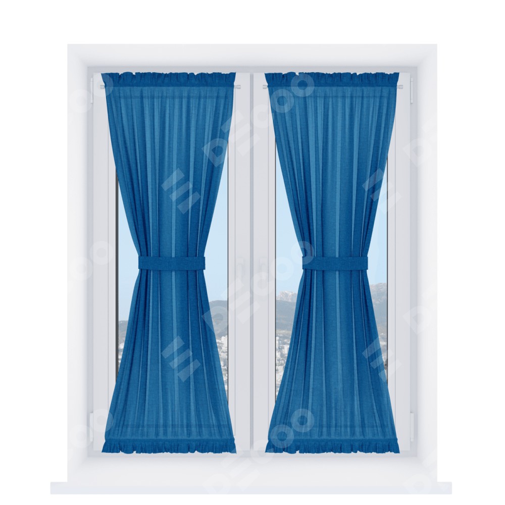 Штора «Песочные часы» производителя «Cortin», используется для створок окон и дверей, пошита из ткани лён синий, артикул ткани 63742.