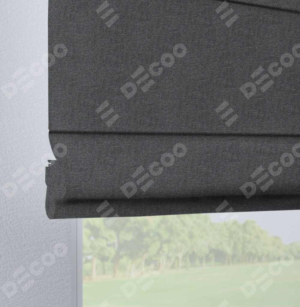 Римская штора производителя «Cortin», используется для проёма, пошита из ткани лён димаут графит, артикул ткани 140644. Данная модель пошита на петлях, комплектуется на выбор круглым карнизом и подходит для монтажа на стену. Римская штора на петлях имеет простую систему регулировки высоты, отличительным преимуществом данной модели является простой способ монтажа. Достаточно повесить ее на трубу и штора готова!