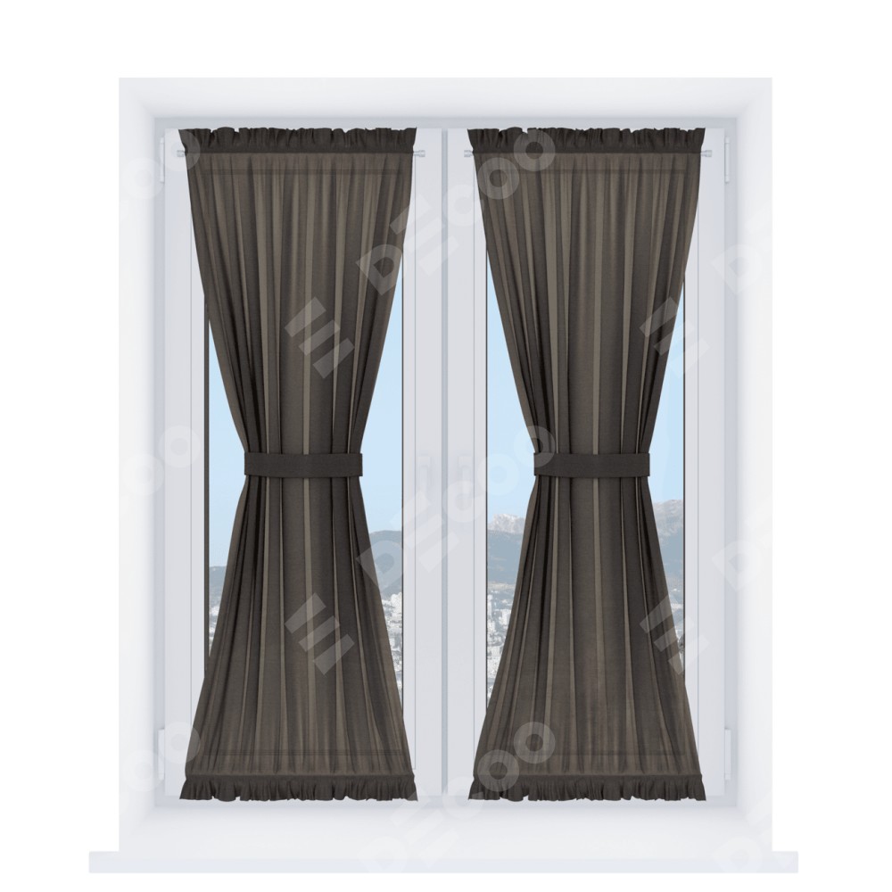Штора «Песочные часы» производителя «Cortin», используется для створок окон и дверей, пошита из ткани лён тёмно-коричневый, артикул ткани 53444.