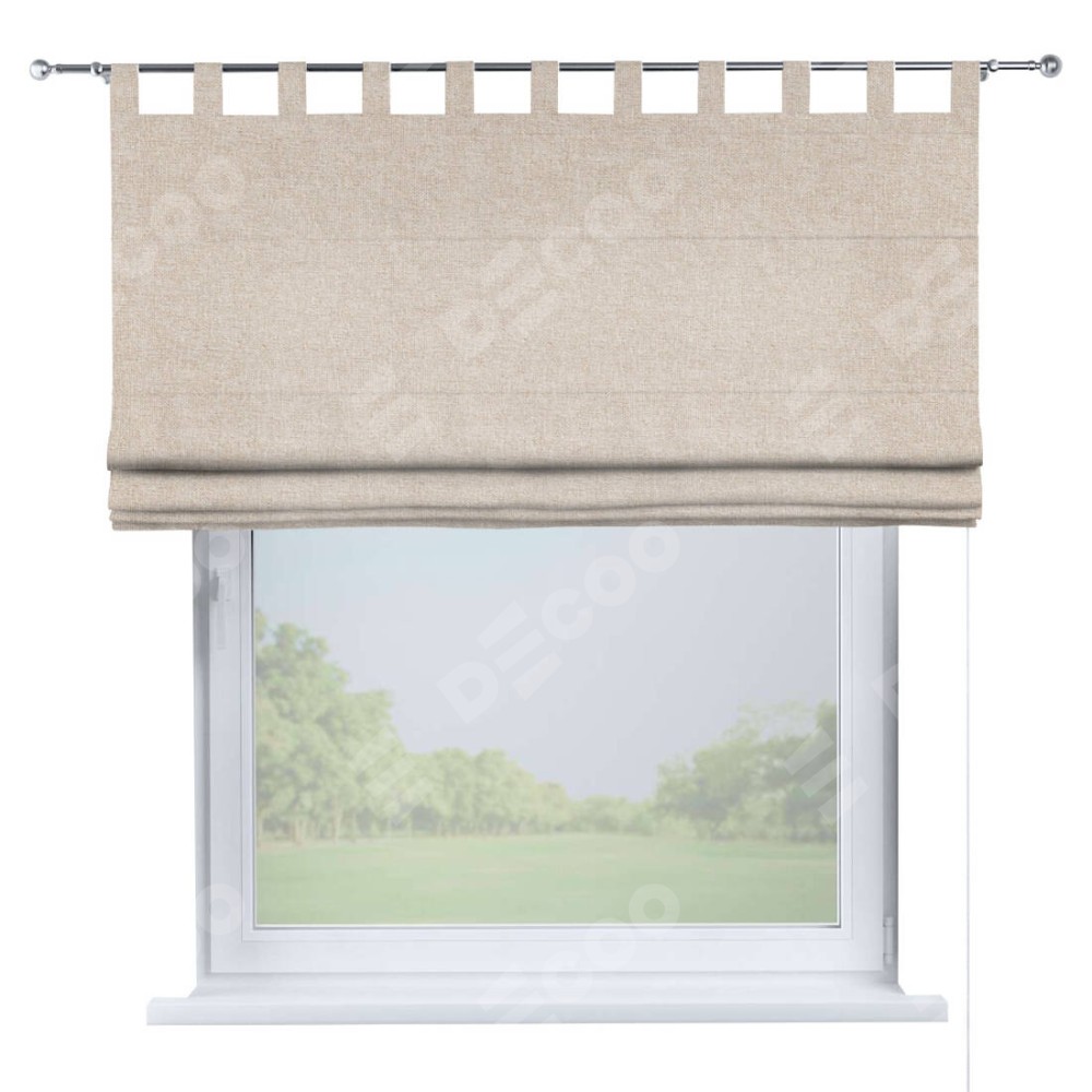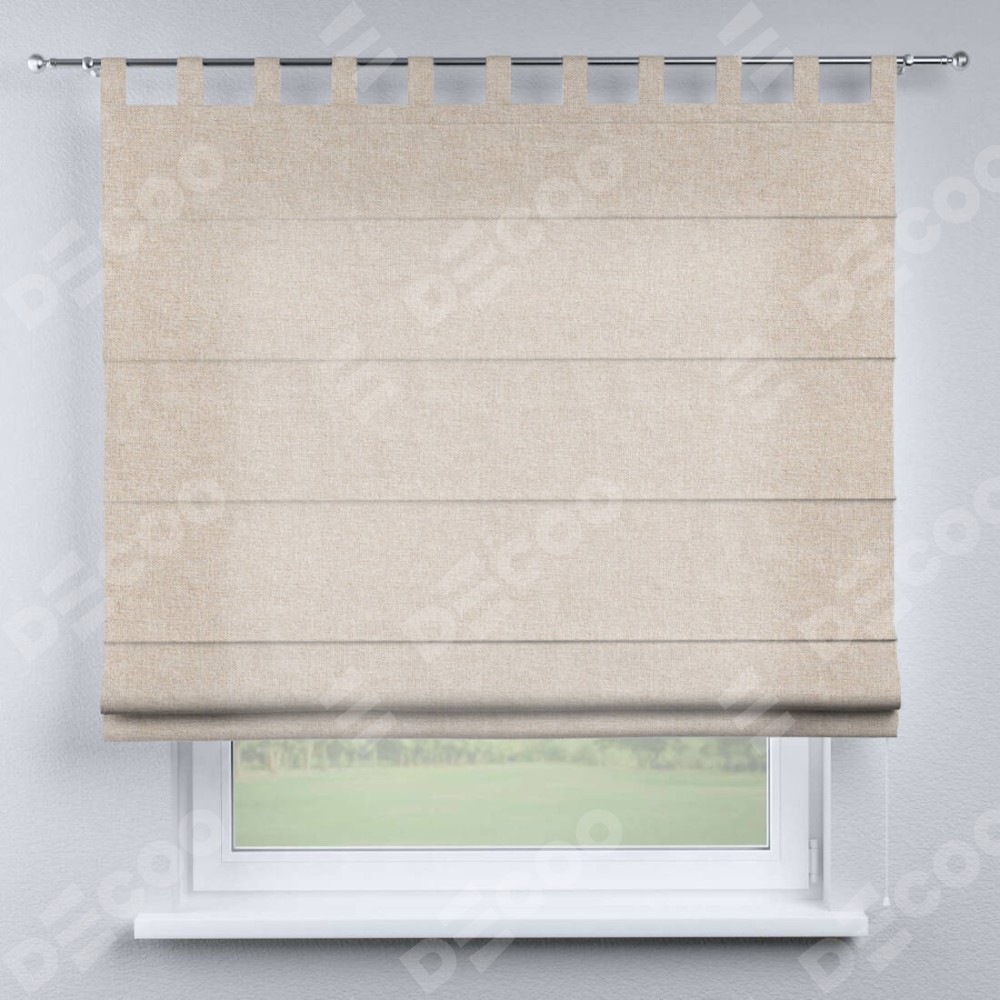 Римская штора производителя «Cortin», используется для проёма, пошита из ткани лён кашемир натуральный беж. Данная модель пошита на петлях, комплектуется на выбор круглым карнизом и подходит для монтажа на стену. Римская штора на петлях имеет простую систему регулировки высоты, отличительным преимуществом данной модели является простой способ монтажа. Достаточно повесить ее на трубу и штора готова!
