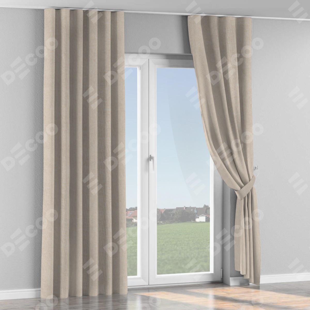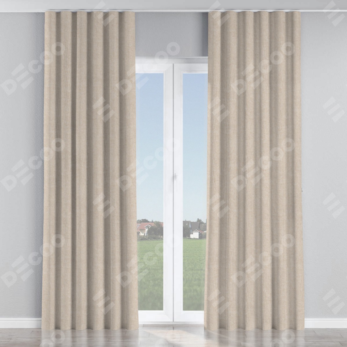 Комплект прямых штор, от производителя «Cortin», пошиты из ткани лён кашемир натуральный беж. С изнаночной стороны в верхней части штор пристрачивается шторная лента с декоративными складками «Волна». Для создания элегантных складок рекомендуемый коэффициент 1:2 (на 100 см. ширины проёма 200 см. ширины ткани). Важно! Ширина штор указана без учёта коэффициента сборки!